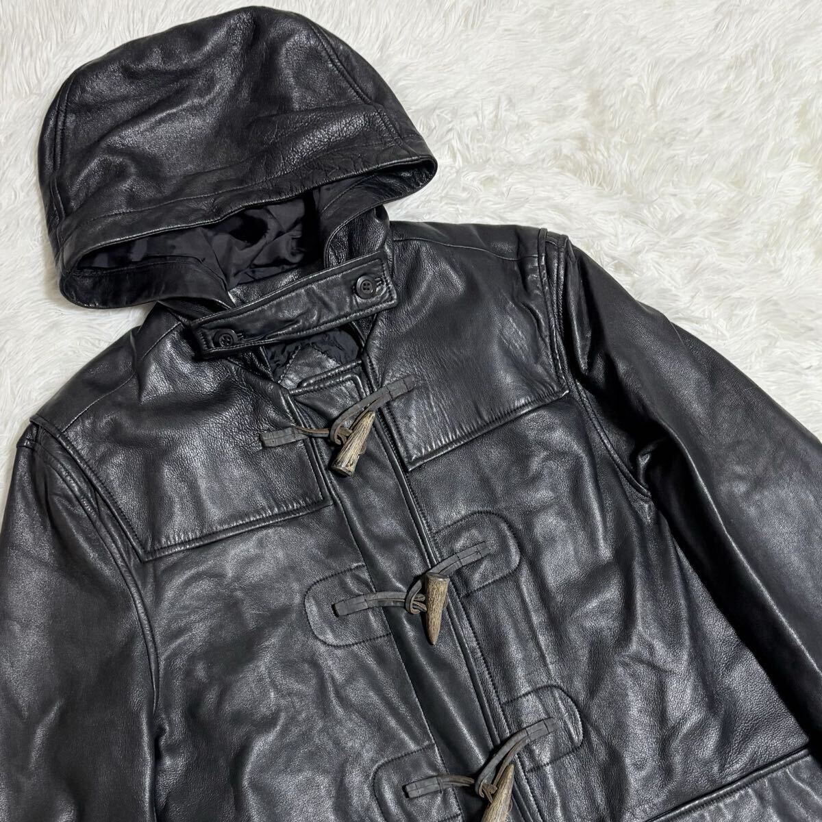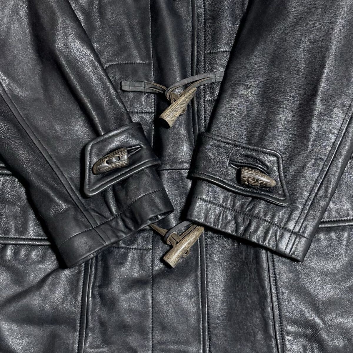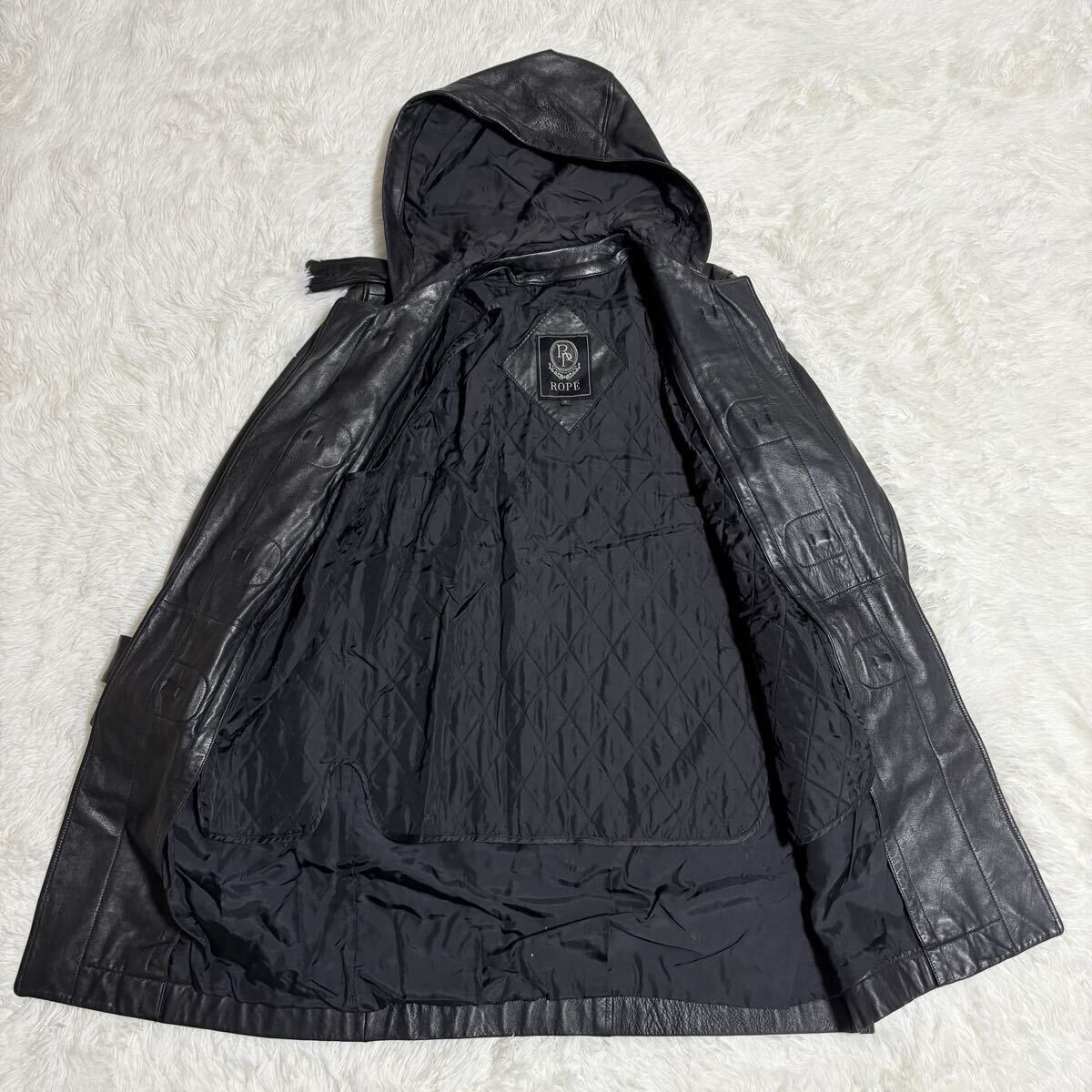 【大人の男の戦闘機】ライナー付 ROPE ラムレザー ダッフルコート レザーコート レザージャケット コート ロングコート 本革 羊革 黒 y2k