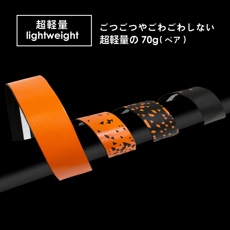 | 2色を使いデザイン性に優れたおしゃれなバーテープです。 スポーティーでありながらシンプルでもある落ち着いたデザイン バーテープ交換は印象をがらりと変えるので自転車のカスタマイズに最適です。 握り心地はモチモチスベスベで2mm厚なのでごつごつしない。 エンドキャップは固定式で使い易いそして綺麗なオイルスリックカラー ・EVA素材は水に強く軽量で、さらに柔らかく弾力がある ・振動吸収性に優れたEVAとレザーの2層構造のバーテープ。 ・表面に滑り加工を施し、重ねたジェル層の振動吸収性能を向上 ・厚み2mmなのに弾力性があり地面からの振動を吸収し伝わりにくくします。 ・熱、摩耗、水に耐え快適でハイパフォーマンスを実現 ・耐久性が高く、ちぎれたり、緩んだり、伸びたりしにくく巻きつけやすい。 ・超軽量の70g(ペア) ・握り心地が良い、触り心地はスベスベモチモチ エンドキャップにもこだわり固定式で紛失しにくく使い易い 綺麗でおしゃれなオイルスリックカラーでこちらも軽量 先端技術のCNC加工法で作成し、頑丈で耐久性に優れています。 また異なるゴムリングが2タイプ付属しているのでハンドルによって柔軟に使えます。 六角で締めて固定します。 商品内容:バーテープ×2、固定式エンドキャップ×2、エンドテープ×2枚 寸法:厚み2.1mm×長さ2200mm、幅30mm 材質:EVA+TPR+PUレザー (エンドキャップ)本体重量:13g(ペア) (エンドキャップ)材質:6061アルミニウム合金、完全CNC加工Vacuum plating surface 《ご注意》・商品は入荷によりキズがある場合があります。 ・保証対象外になりますのでご了承お願い致します。 ・ディスプレイ環境により実物と色が異なる場合が有ります。 ・入荷時期により予告無く一部仕様変更する場合が有ります。 ・サイズ表、注意事項は必ずご確認下さい。 | |