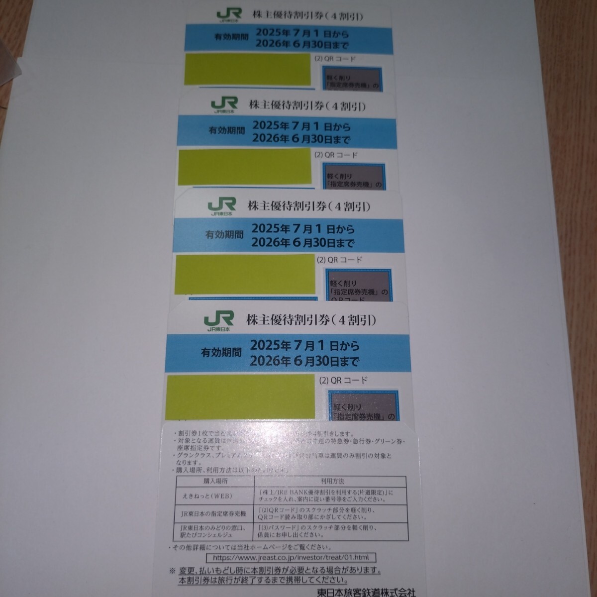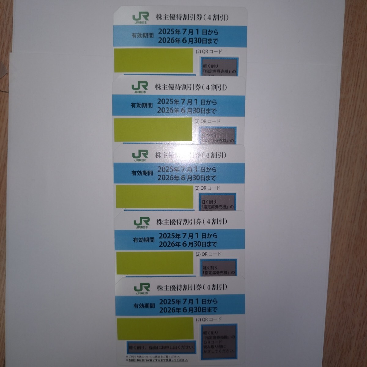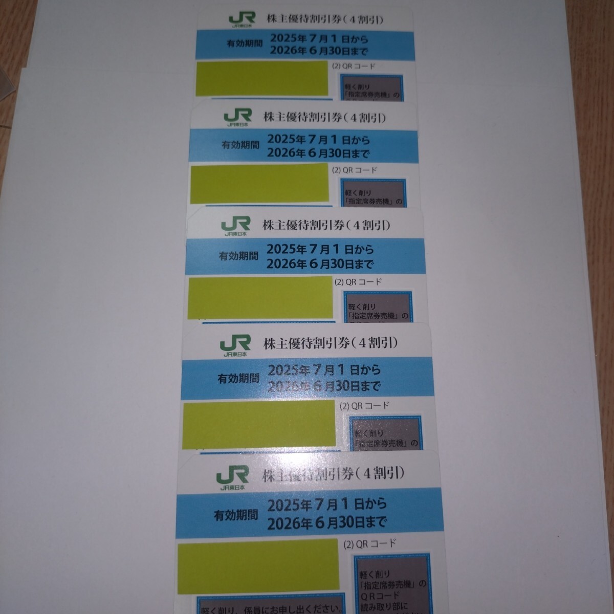 JR東日本 株主優待割引券(4割引き)5枚、です。