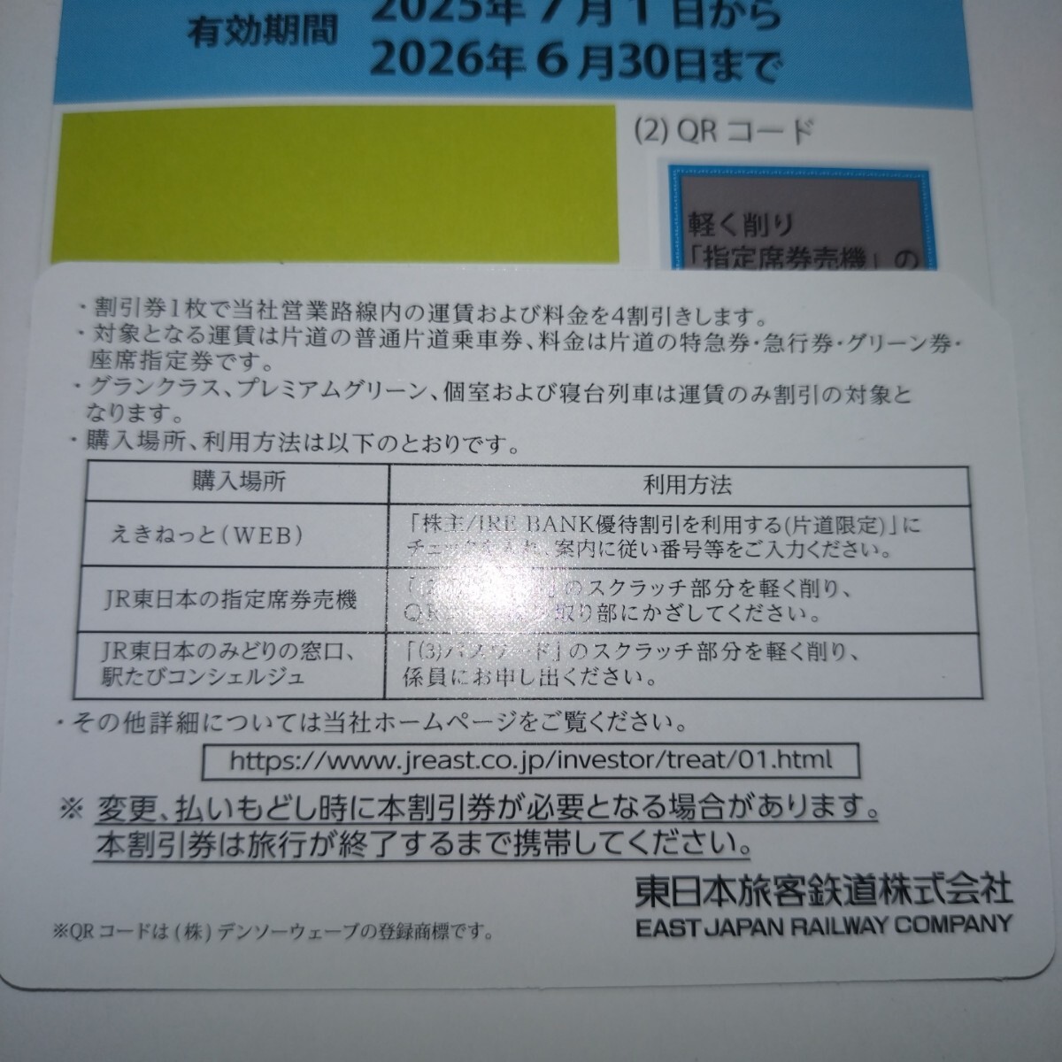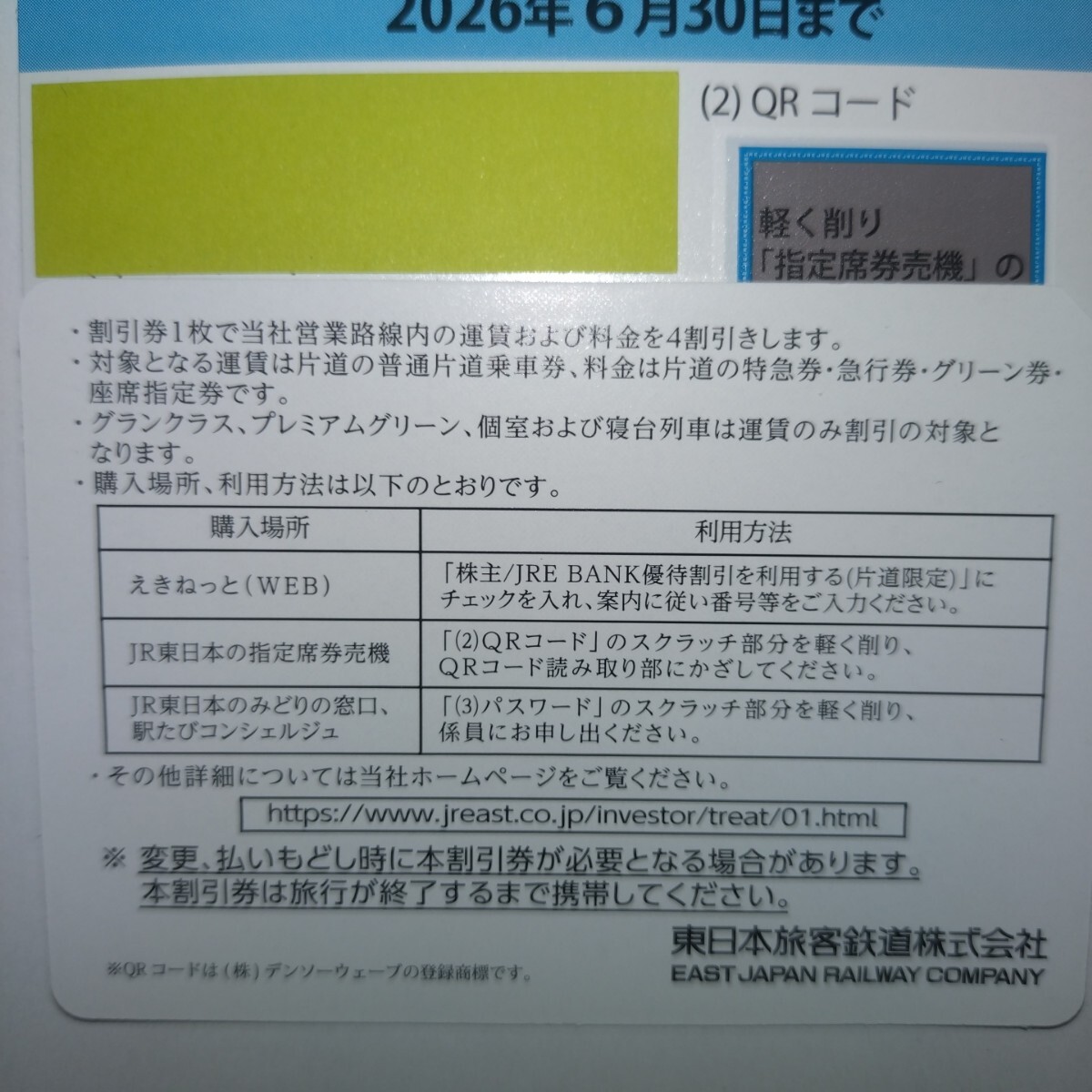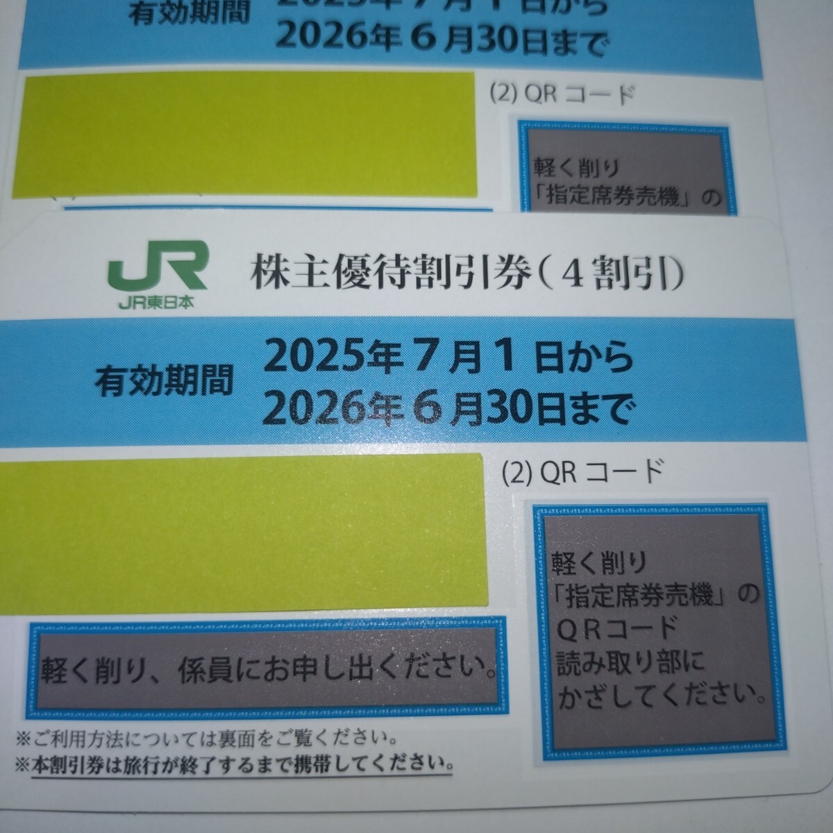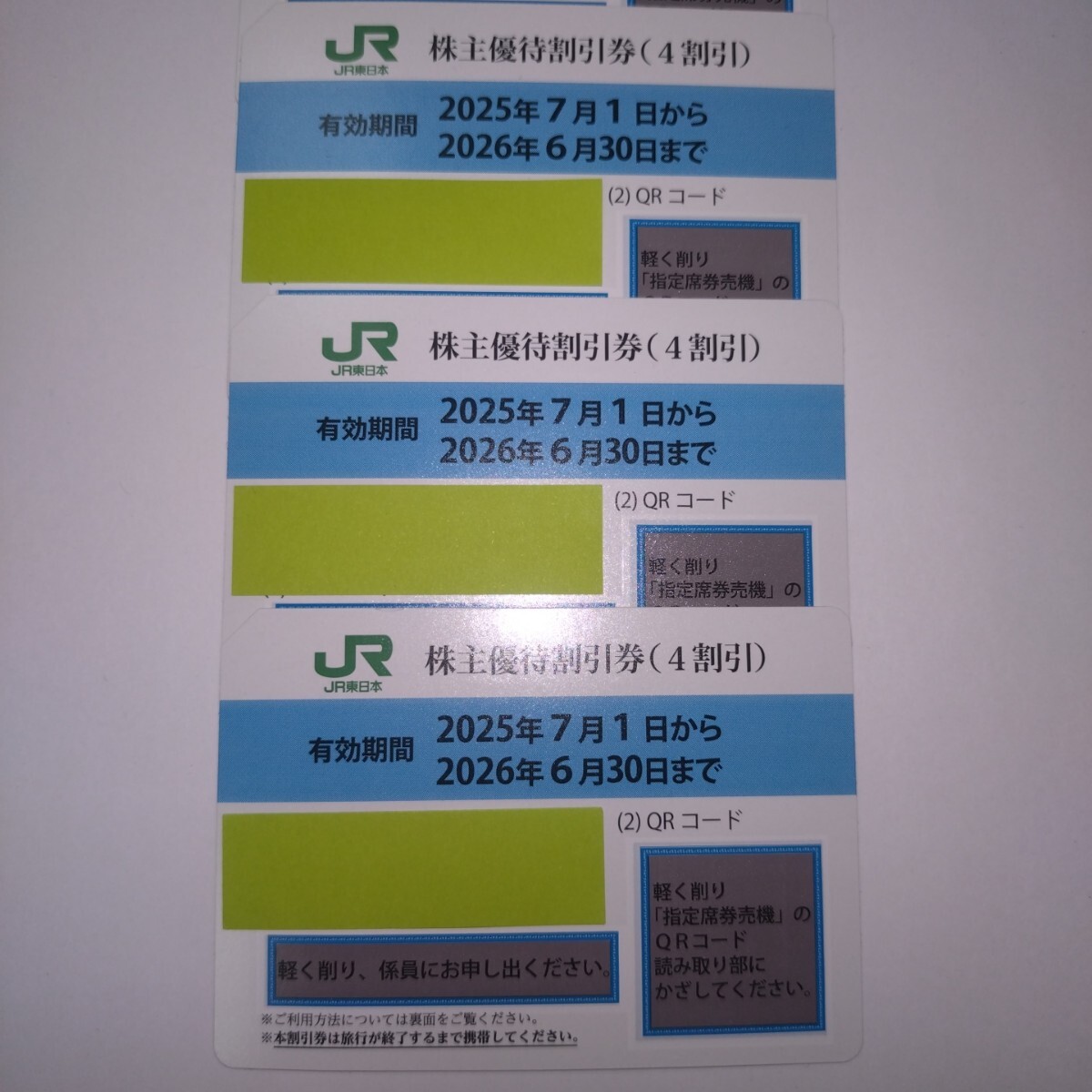 JR東日本 株主優待割引券(4割引き)5枚、です。