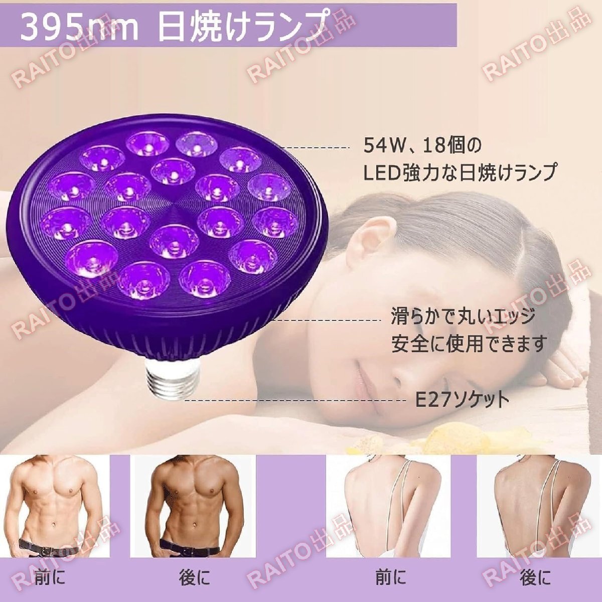 • 【自宅で日焼け】この日焼けランプの出力は54Wで、18個のLEDランプビーズと取り外し可能な標準スレッドソケットで構成されています。丸みを帯びたエッジのデザインにより、より均一な照明が確保され、体や顔に効果的に使用できます。