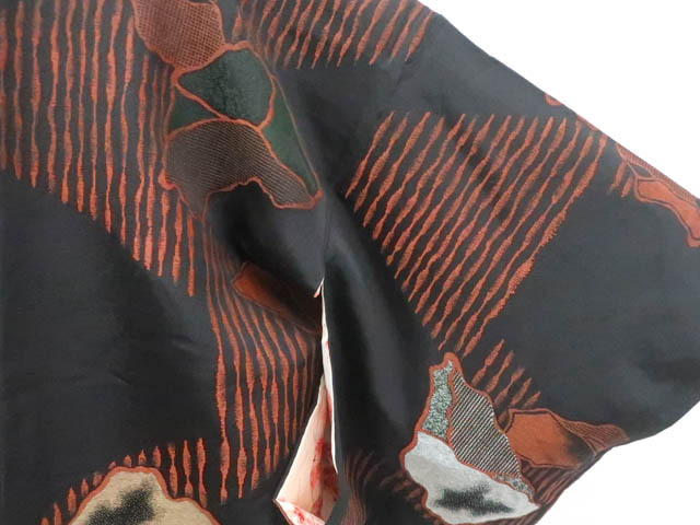 リサイクル商品のため、保管臭、羽裏に薄汚れや黄ばみ、紐にシミと糸飛び出しがございますがご着用いただけると存じます。 地色は黒です。 1枚目の画像が近いお色かと思われます。 素材は正絹です。 日本国内から発送いたしております。 発送後は追跡番号をお知らせいたします。 スタッフによる手作業での検品採寸済み。 |
