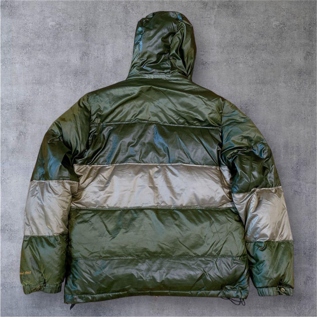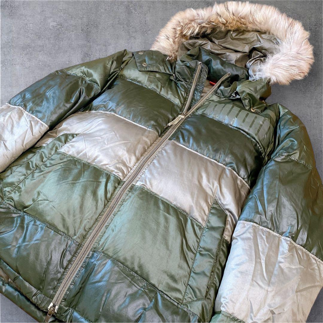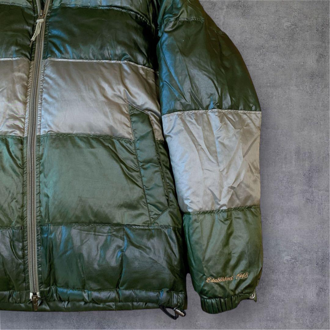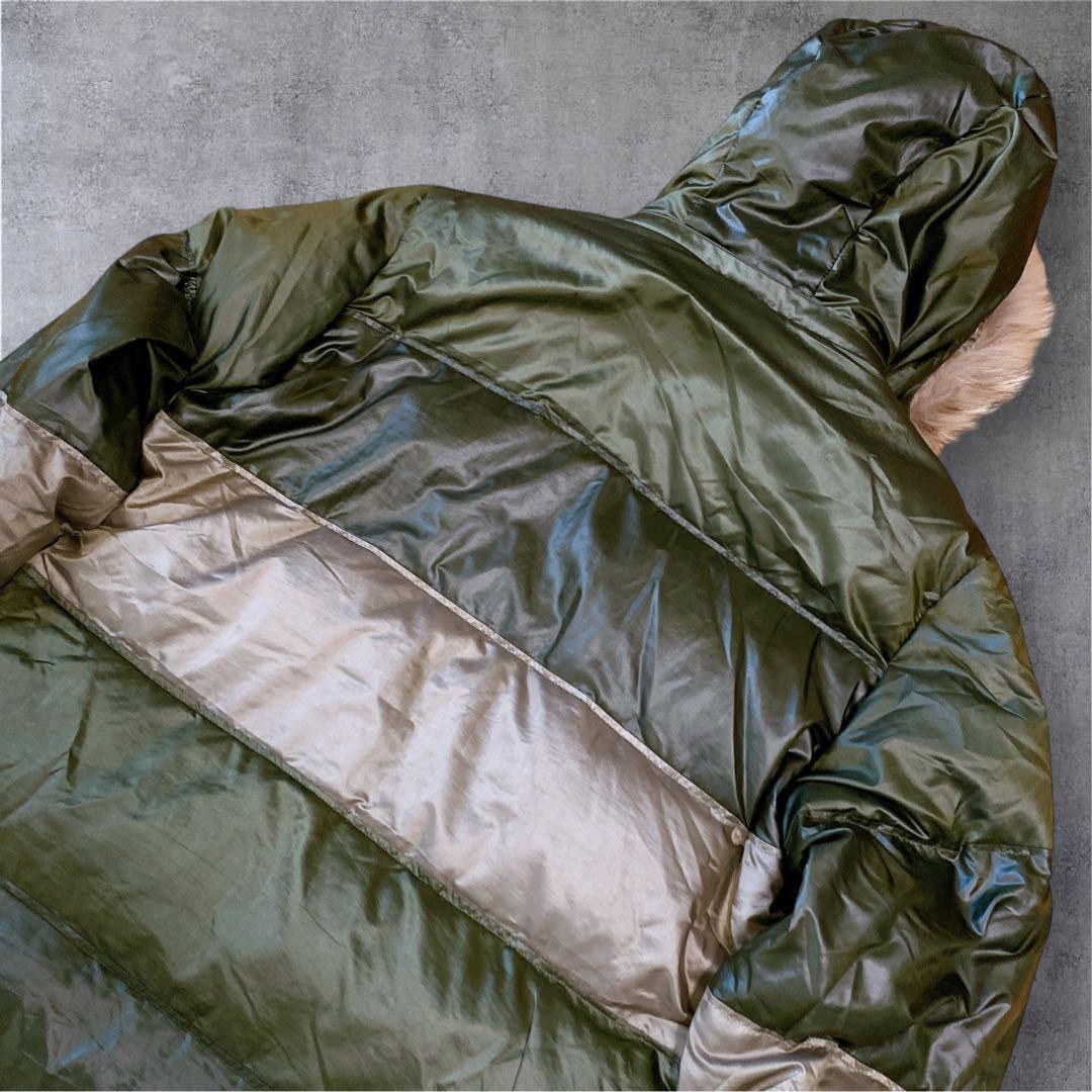 深みのあるオリーブグリーンと、光沢のあるシャンパンゴールド系の切り替えが非常にスポーティかつラグジュアリーな印象を与えます。ダウン95%という高い比率で、真冬の寒い日でも暖かく過ごせる高い機能性を持っています。
