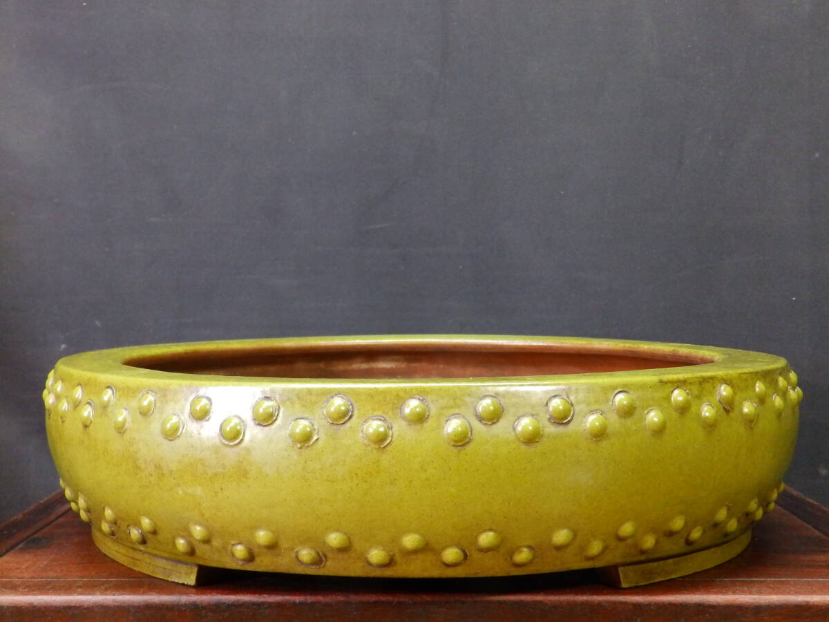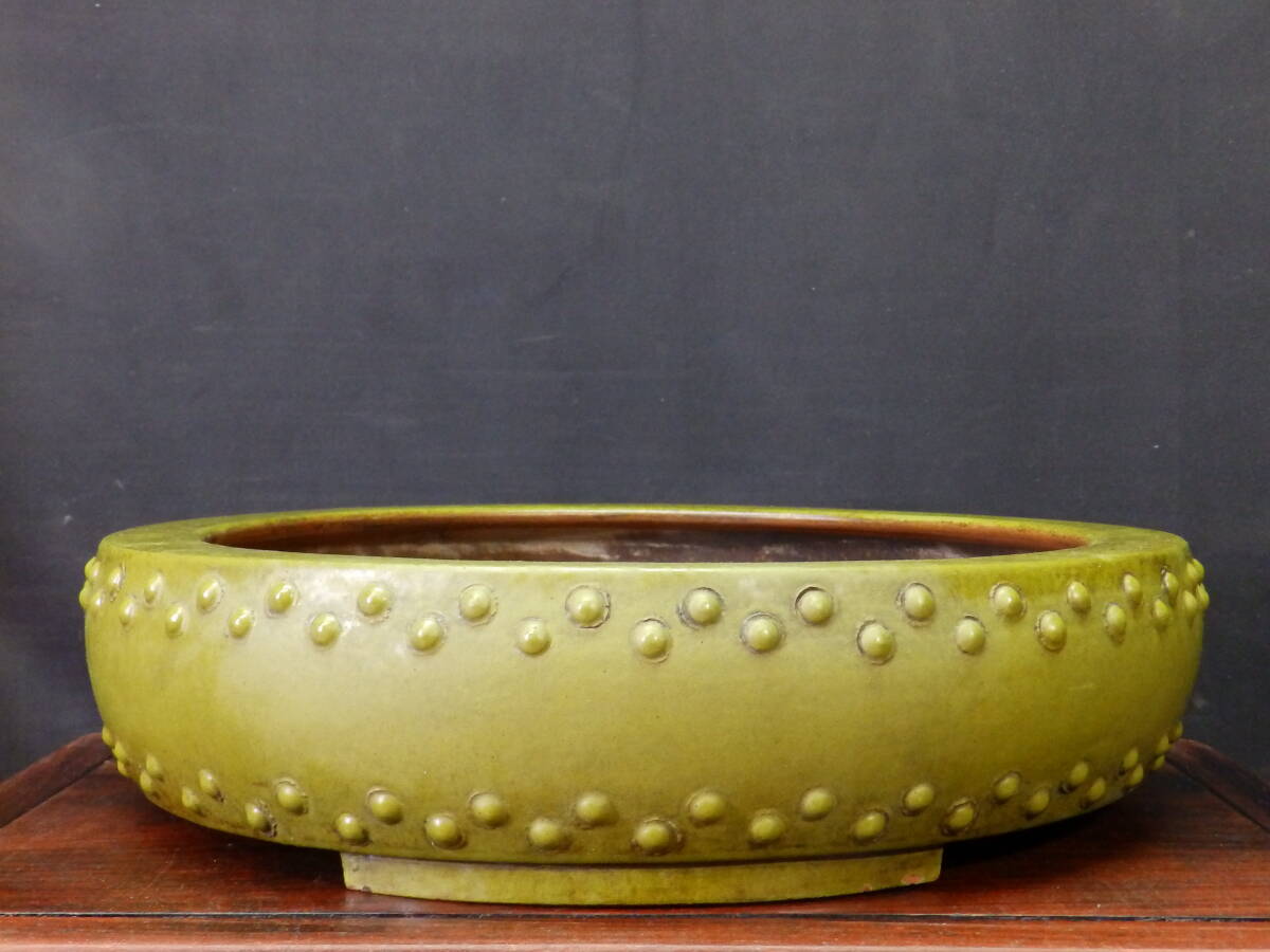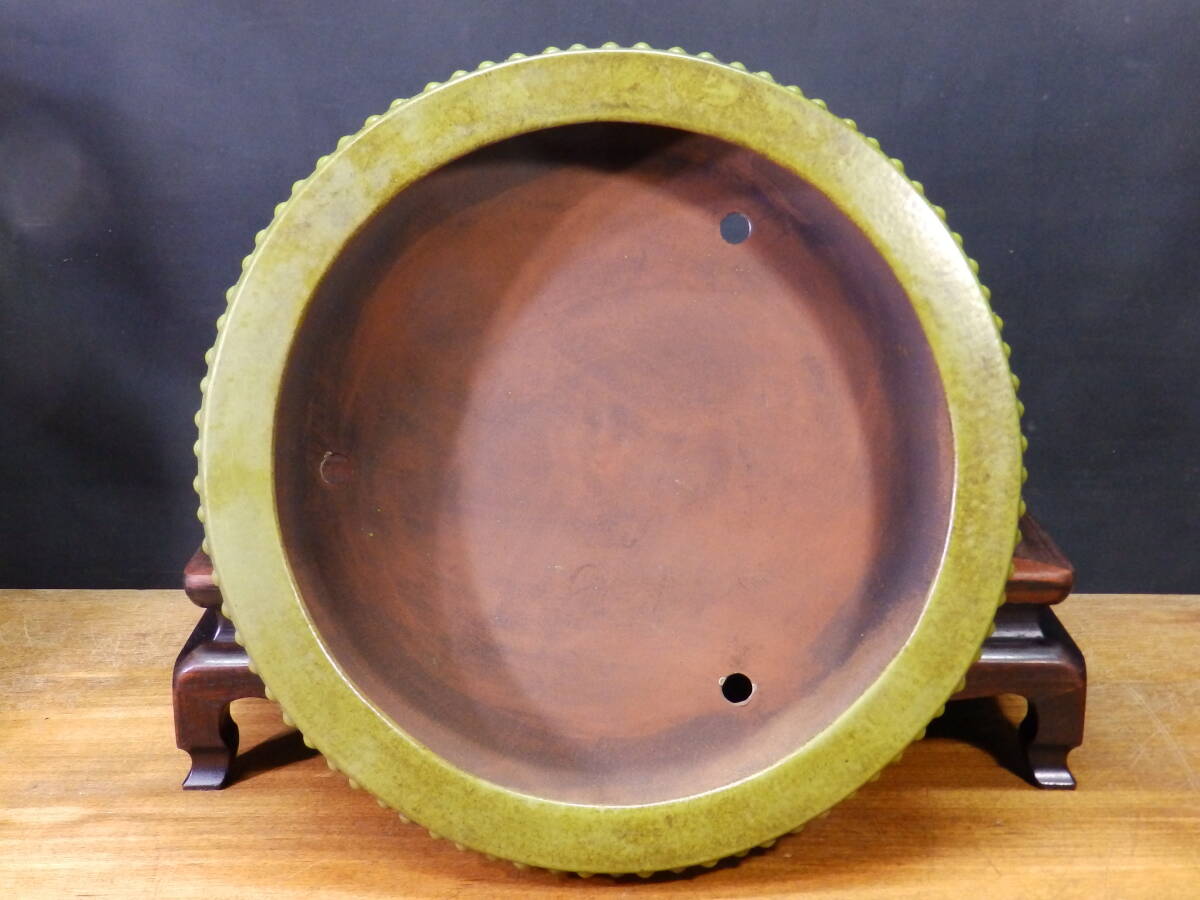★盆栽日和★ 【中国古盆器】 黄交趾鋲打ち丸鉢 40㎝ (h)