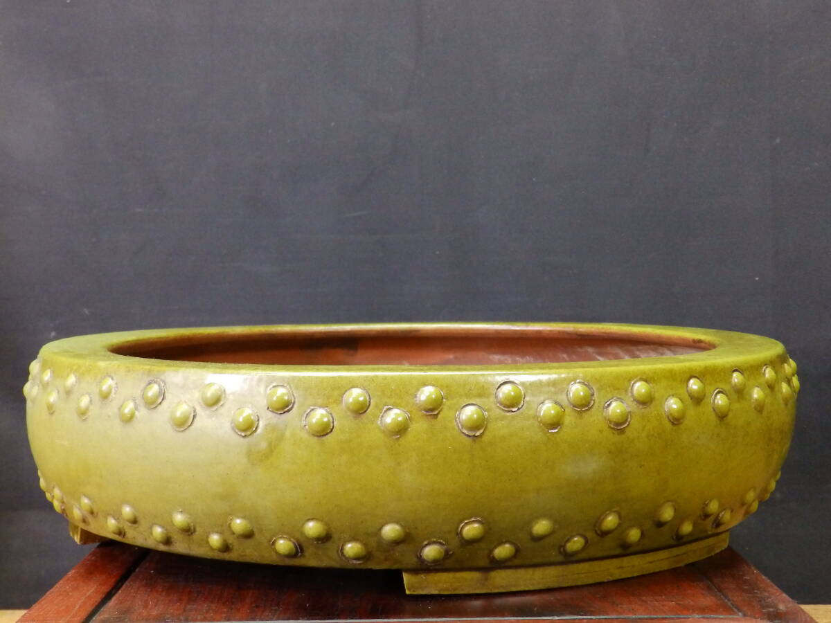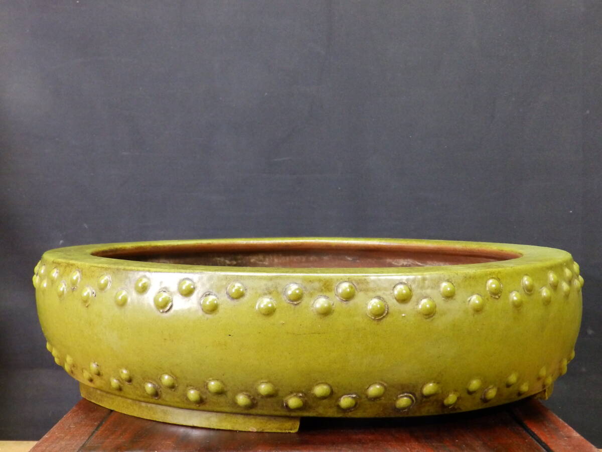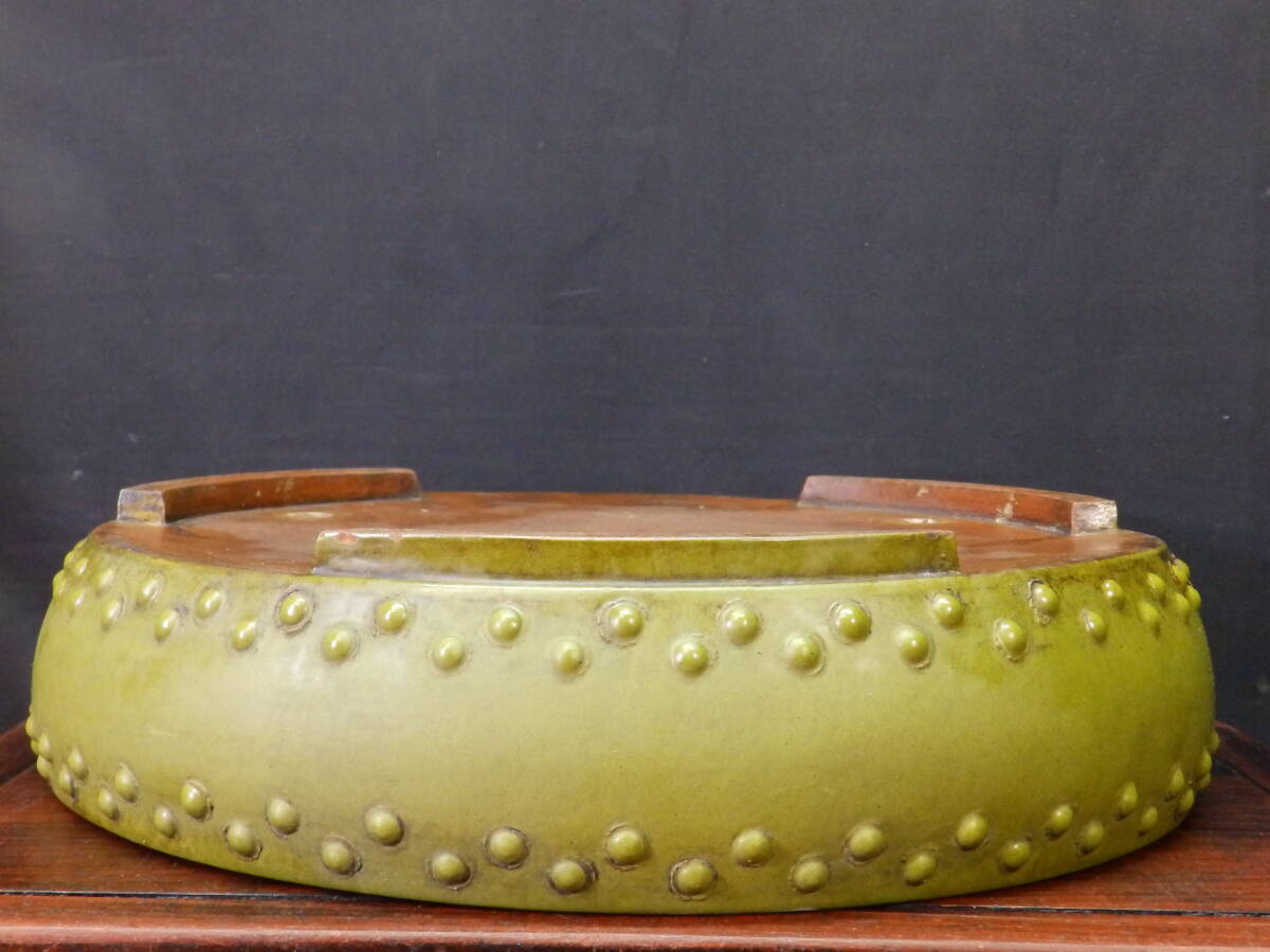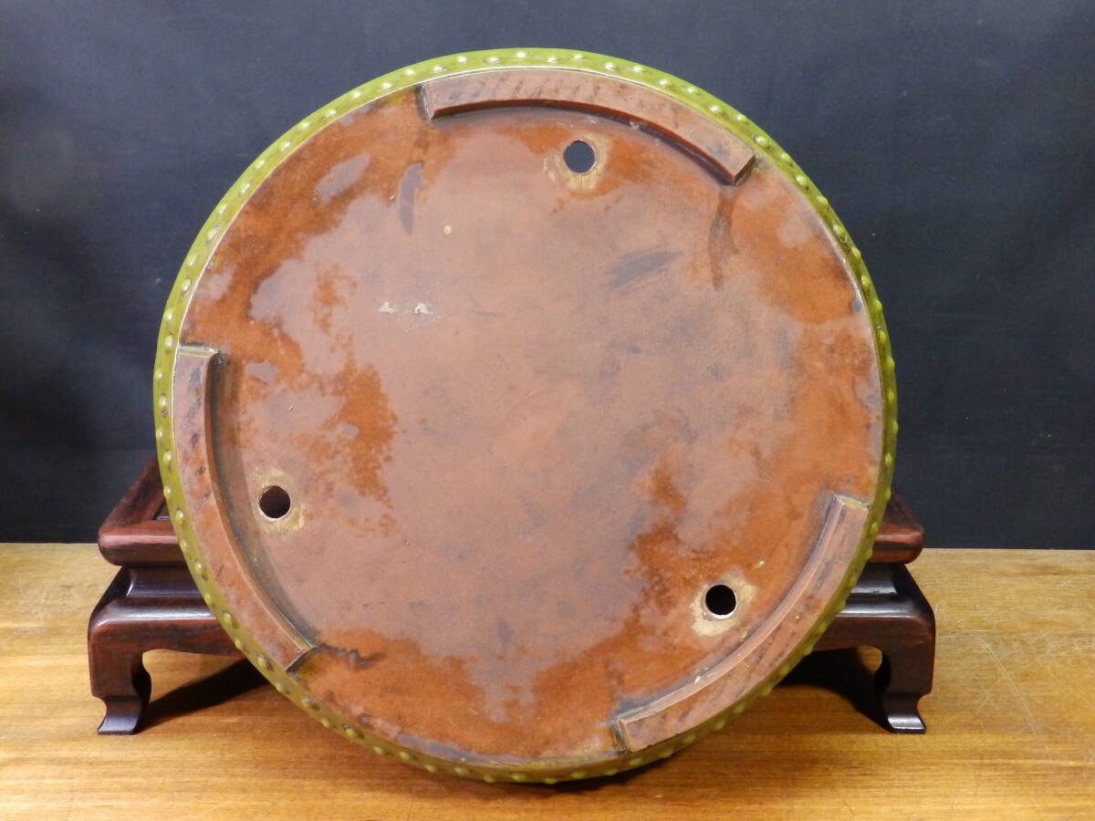★盆栽日和★ 【中国古盆器】 黄交趾鋲打ち丸鉢 40㎝ (h)