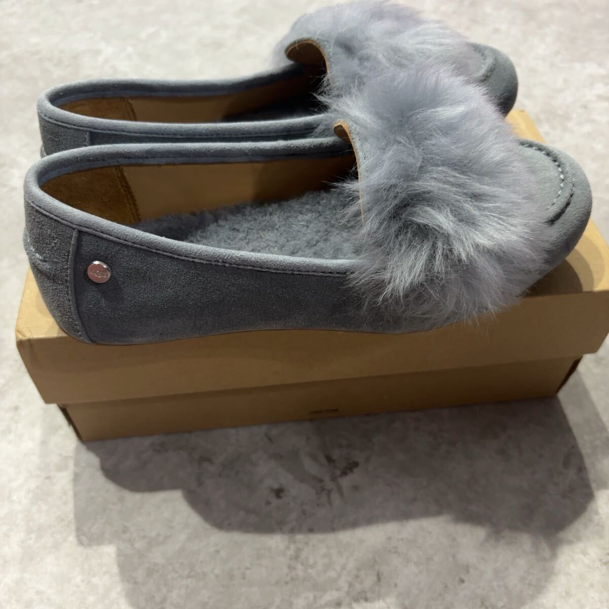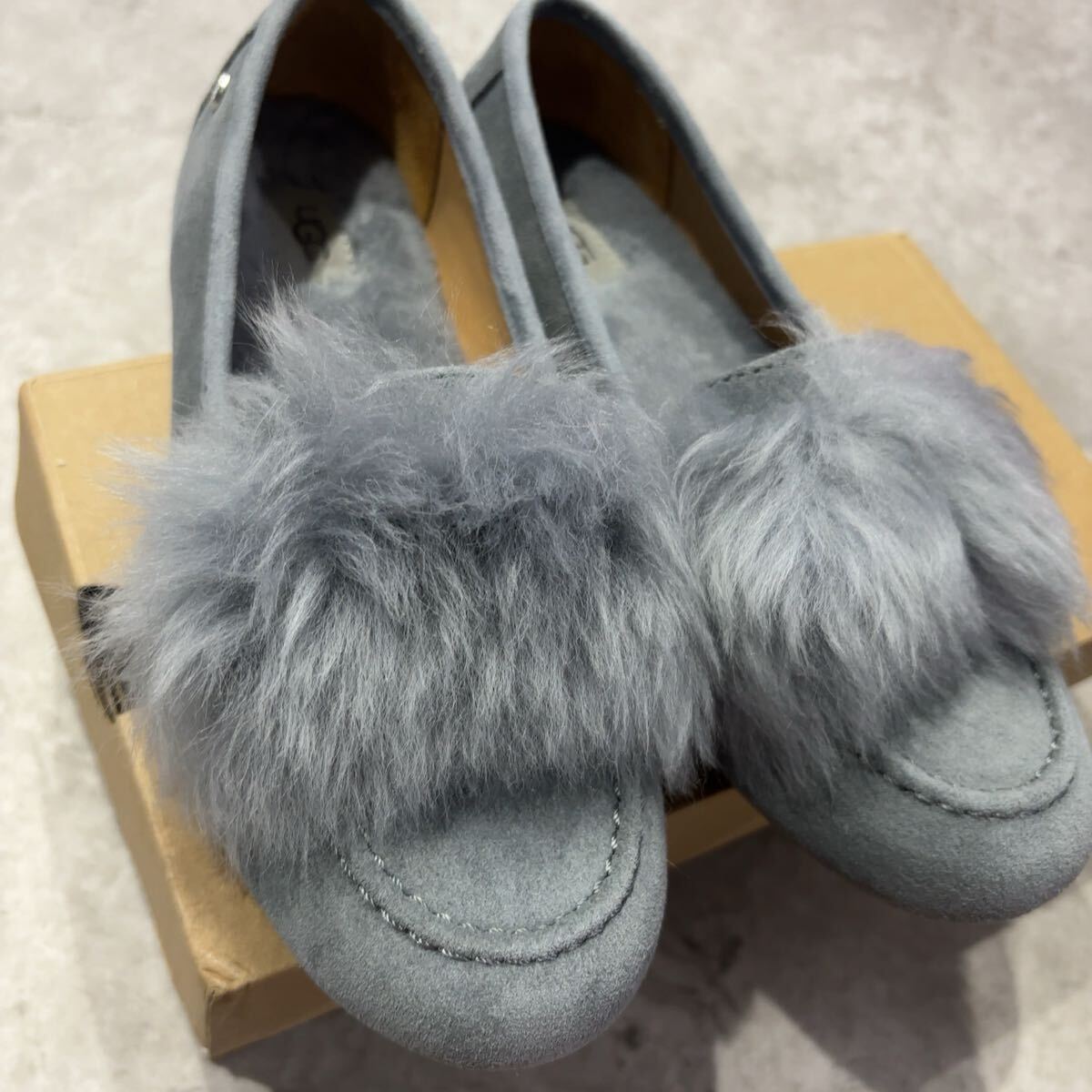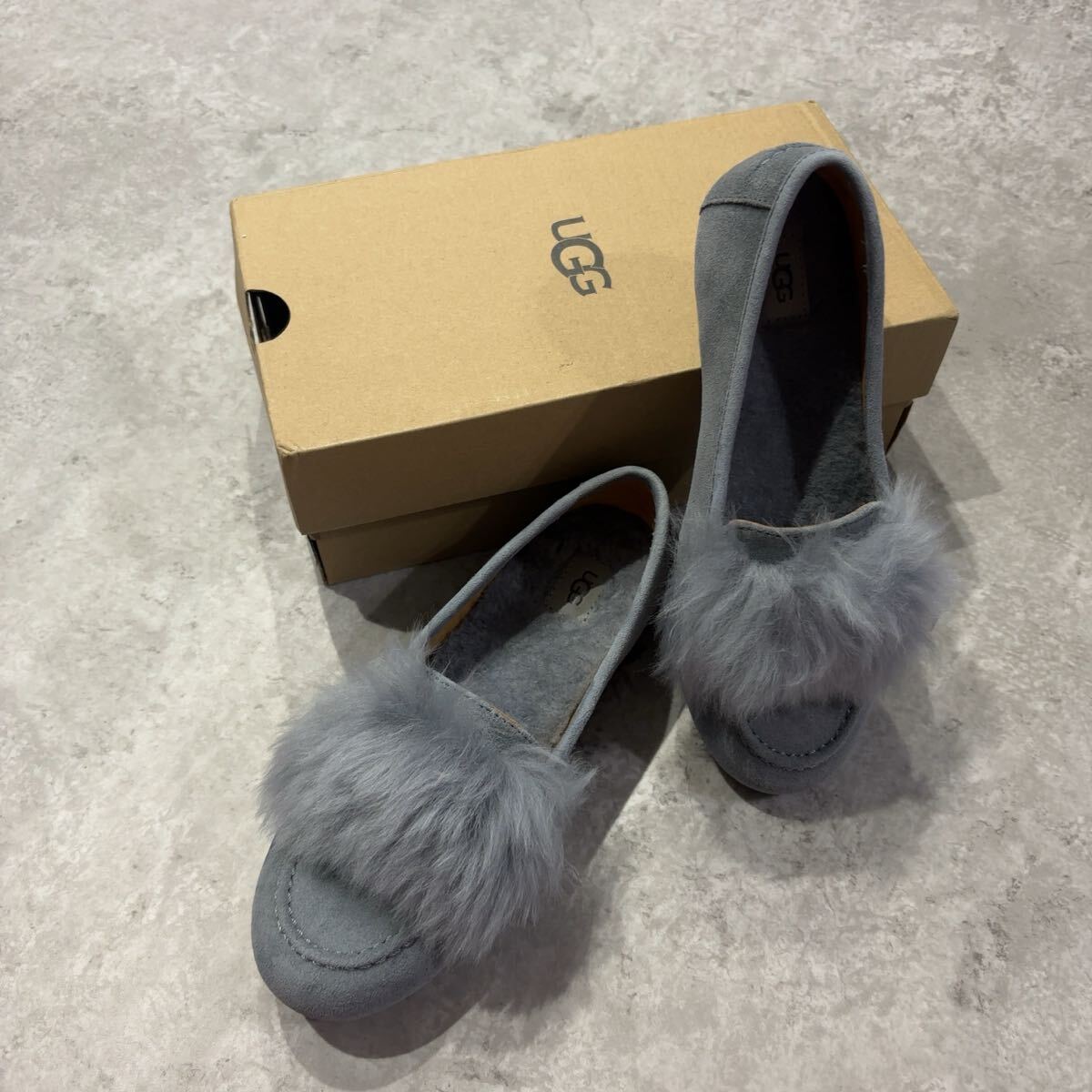 UGG アグ W KALEY WISP グレー ファー モカシン 1102689 スリッポン フラットシューズ US6 23cm レディース シープスキン スエード