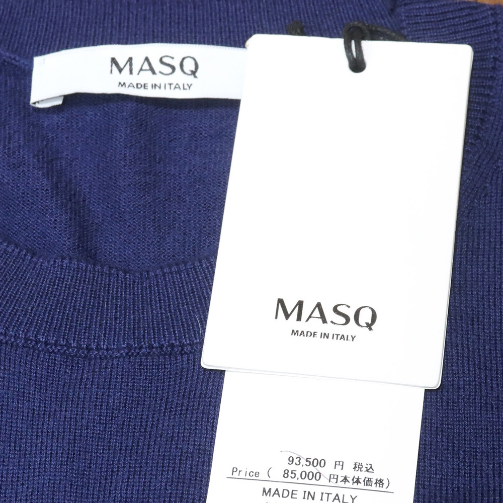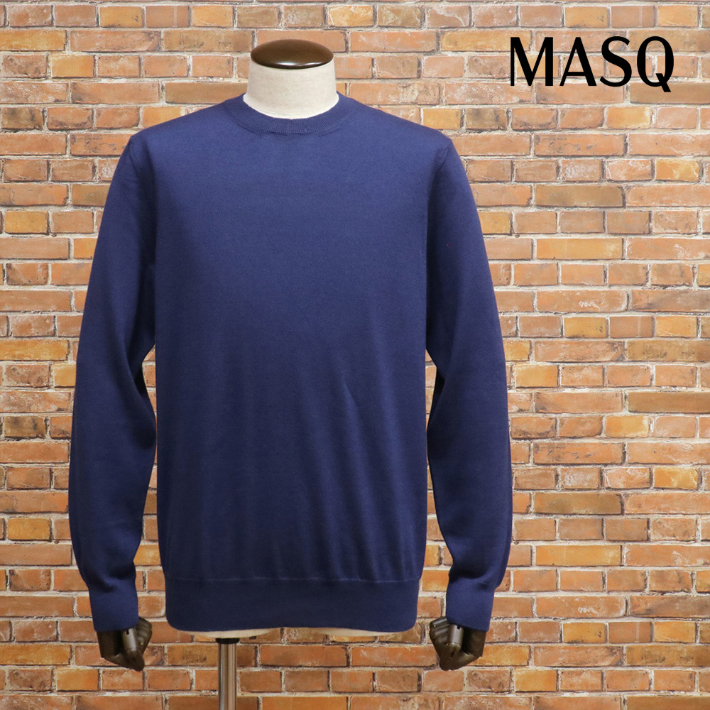 1円/秋冬/MASQ/50サイズ/イタリー製ニット カシミヤ シルク混ハイゲージ 極上 贅沢 無地 丸首 セーター 新品/紺/ネイビー/md401/