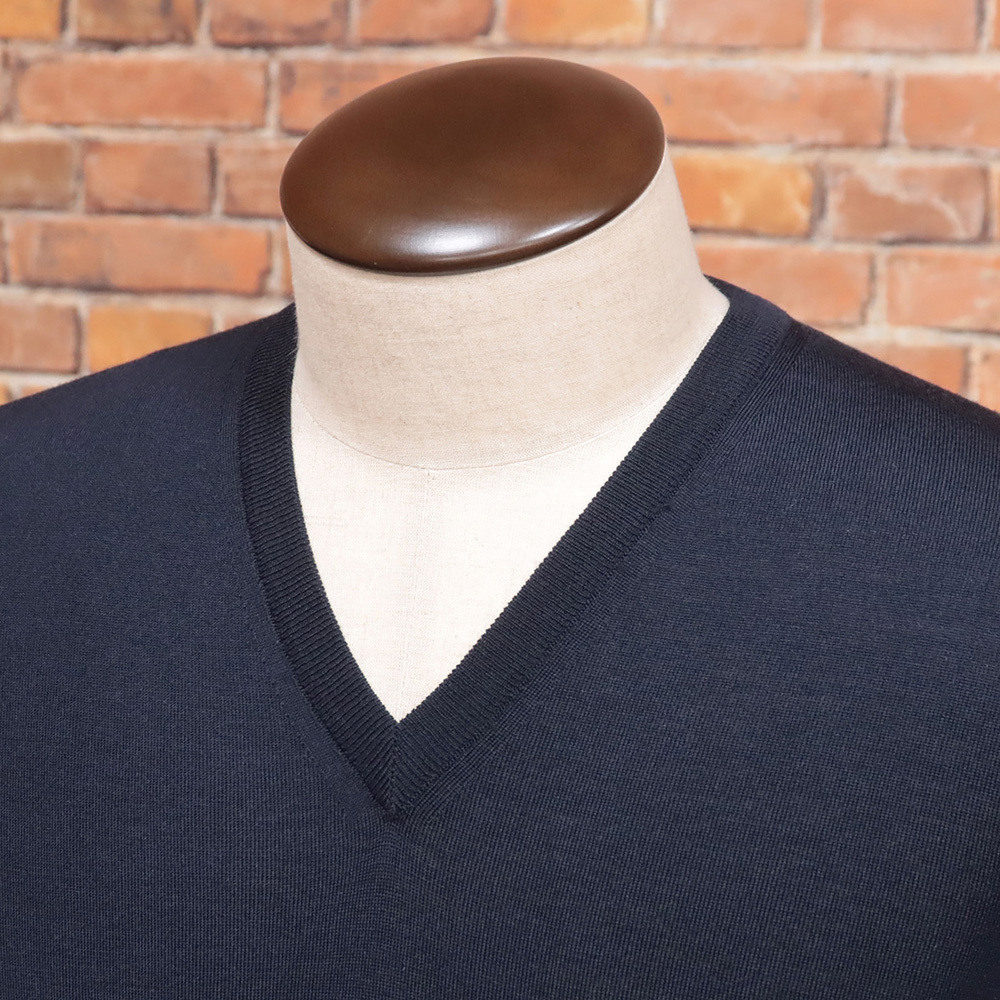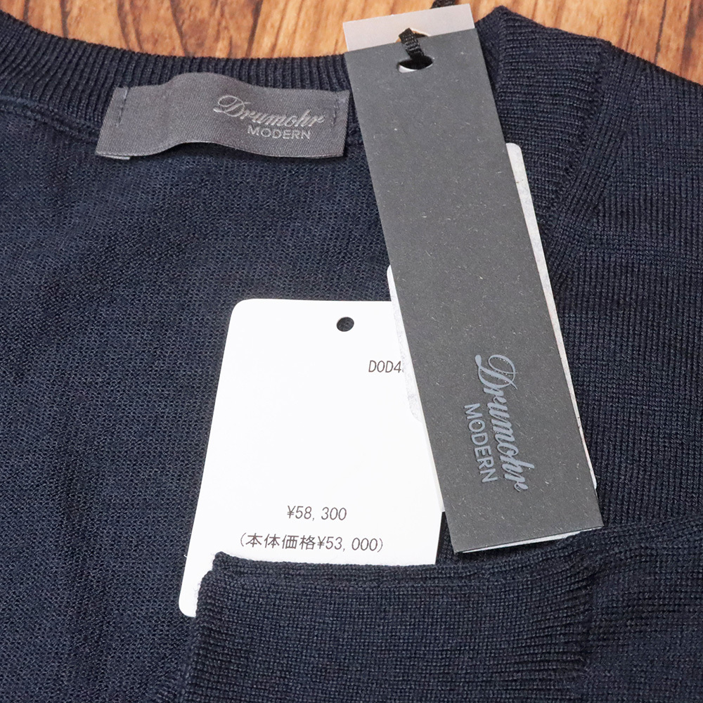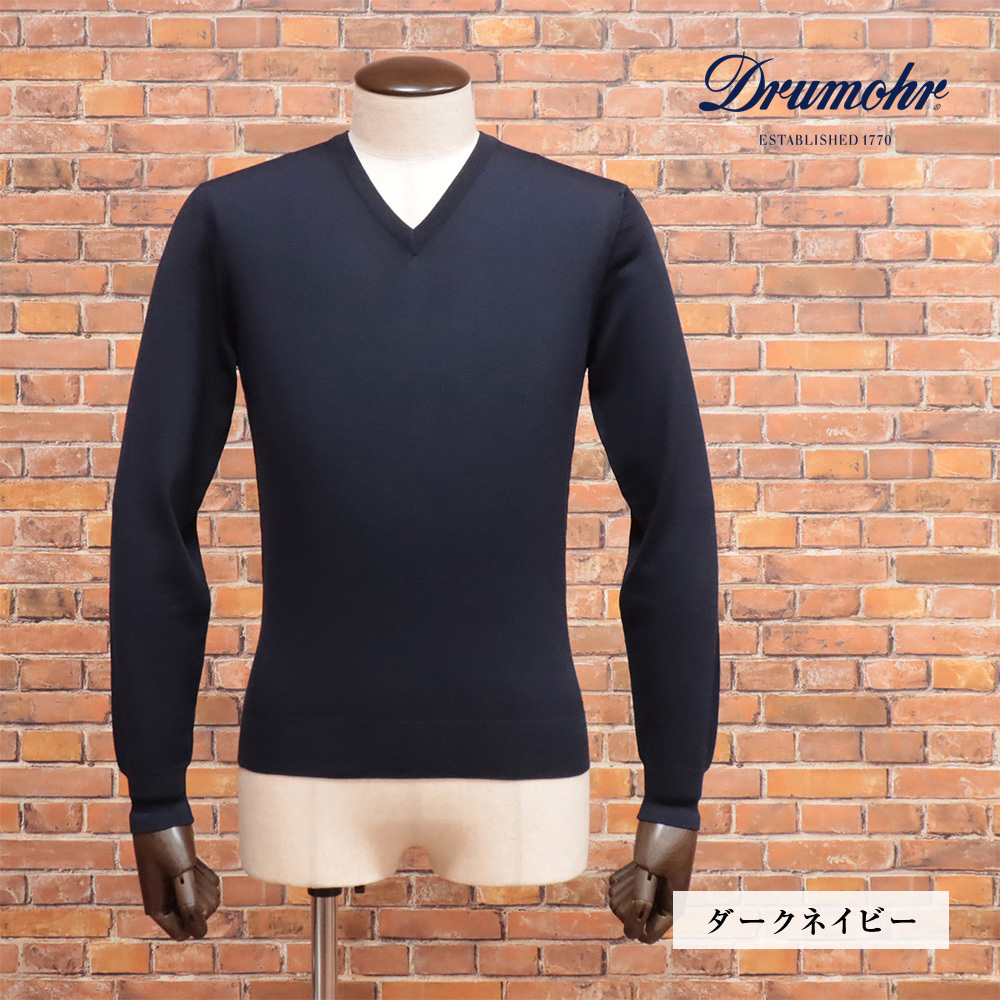 1円/24aw/Drumohr/50サイズ/Vネック ニット D0D481 スーパー140’s ウール 無地 イタリア製 セーター 新品/濃紺/ダークネイビー/mb393/
