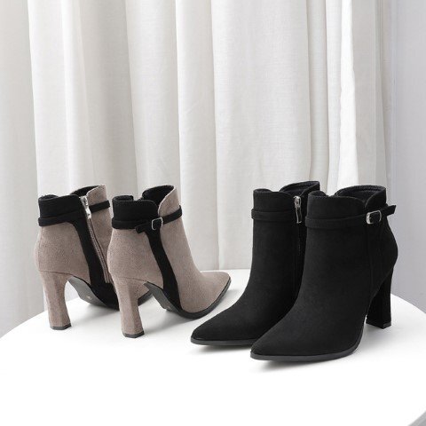 ・足がすらりと見えスタイリッシュな印象のポインテッドトゥブーツ。