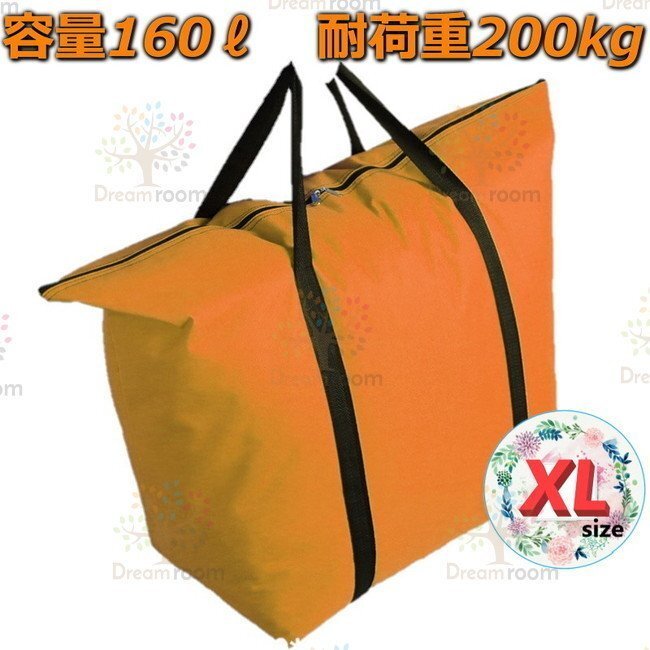 オックスフォード生地 大きめ ショッピングバッグ オレンジ【XL】トートバッグ エコバッグ コストコ 業務用スーパーなどの大荷物に!F-217