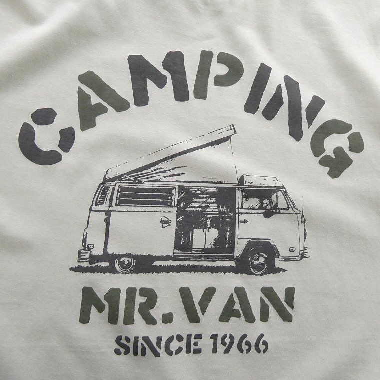 ・フロントにキャンピングカーのプリントを施したカットソー。 ・前裾にはラバープリントでビスネームをデザインしています。 ・肌当たり良いソフトな風合いコットン生地を使用、適度なストレッチ性もあり快適な着心地です。 |