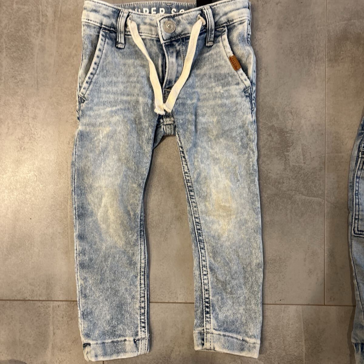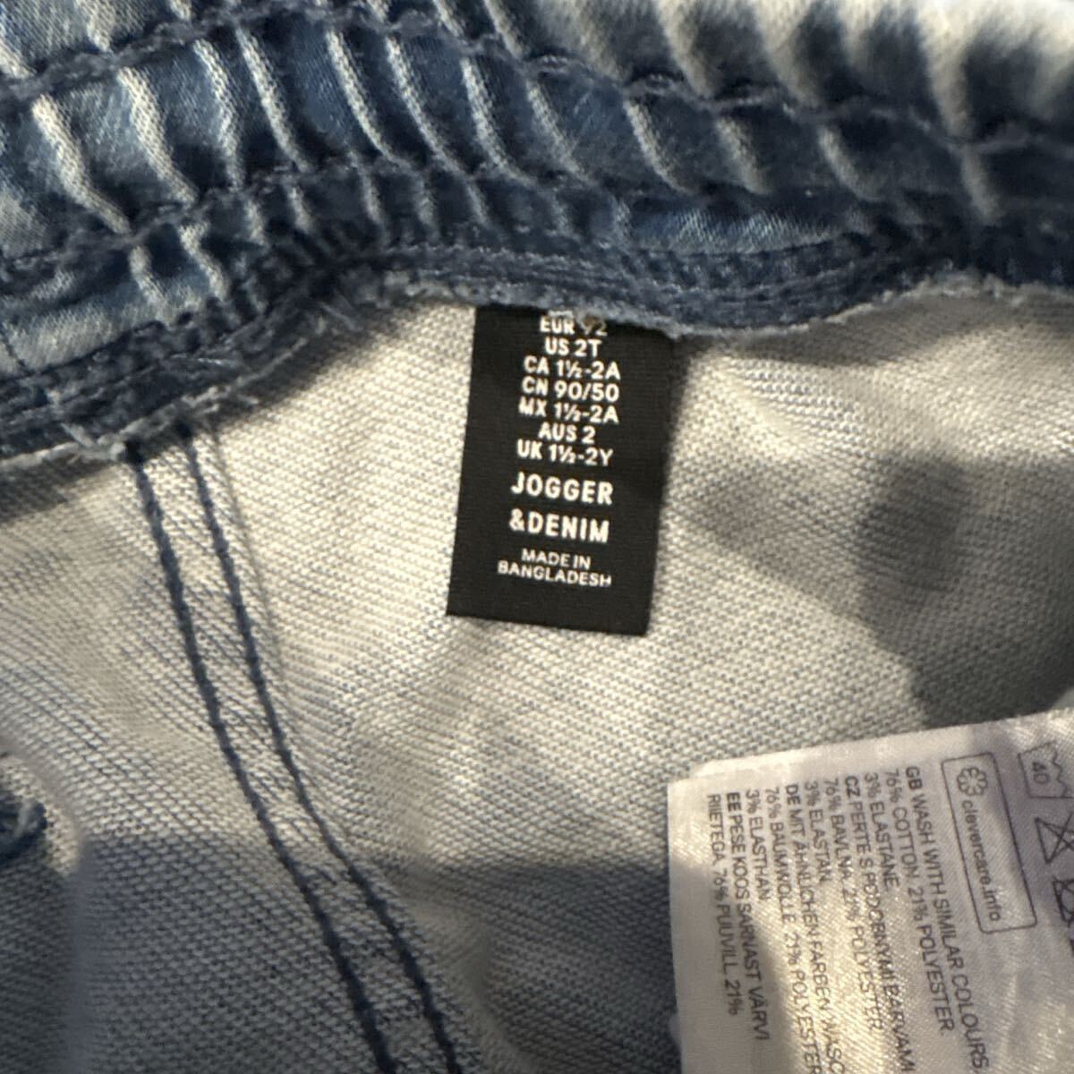 ライトブルーのジョガーパンツ、快適なデニム素材で、動きやすさを重視したデザイン。