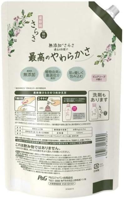 さらさ 柔軟剤 詰め替え 大容量 3.6倍 1350mL 2袋