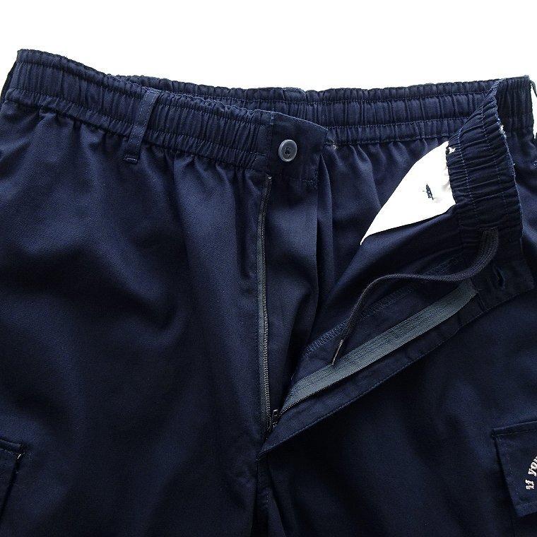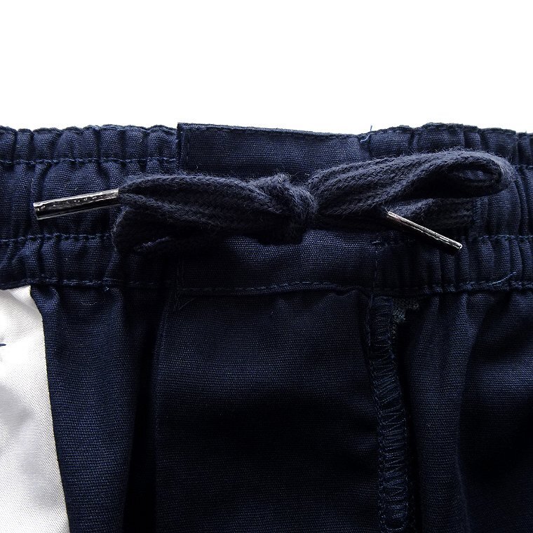 Mサイズ ウエスト76~84 ※商品に記載されたサイズ・寸法です※ ウエスト76~84cm(内回り1周 ゴム入り) 股上31cm 股下24cm 裾幅28cm 股下10cm部分の腿幅31cm 綿100% 79(NAVY) |