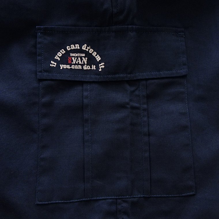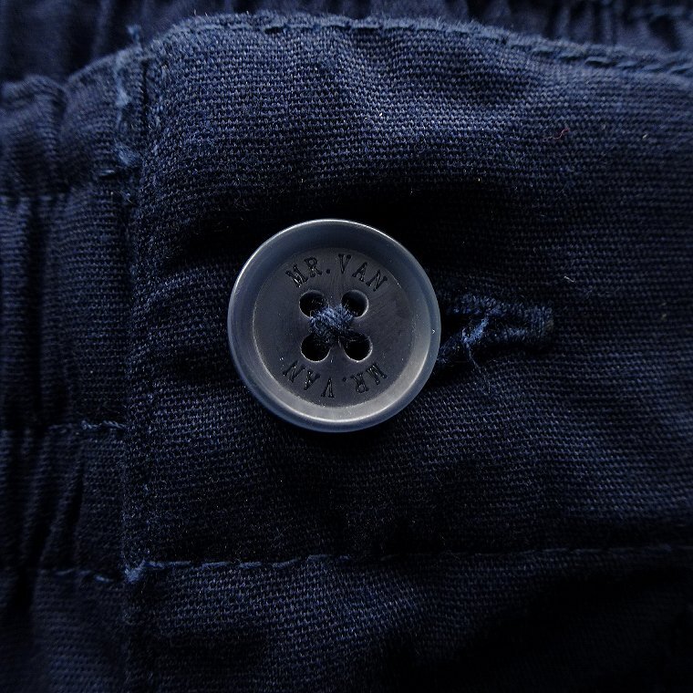 ウエストゴム&ドローコードのイージー仕様で、快適な穿き心地が魅力のショートパンツです。 適度に密度やハリを保ちつつ通常よりも通気性を高めた、ライトな風合いのコットンツイル素材を使用しています。 綿100%ですがナチュラルなストレッチ性があり、動作性が良いのも魅力的なポイントです。 フロントにはMR.VANオリジナルロゴ刺繍が入っています。 |