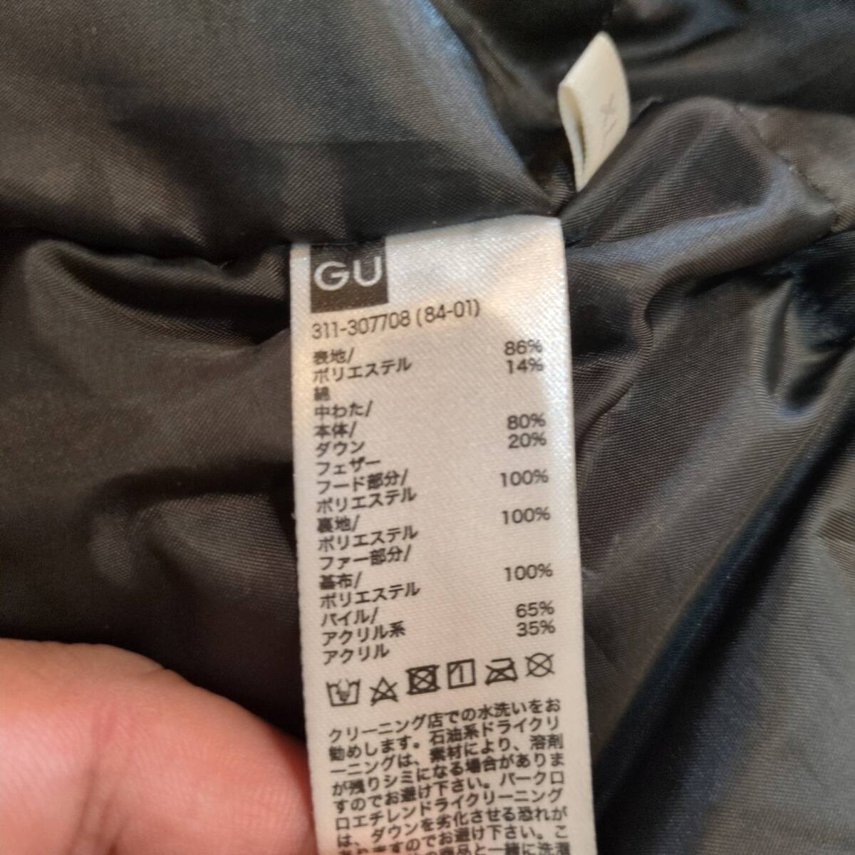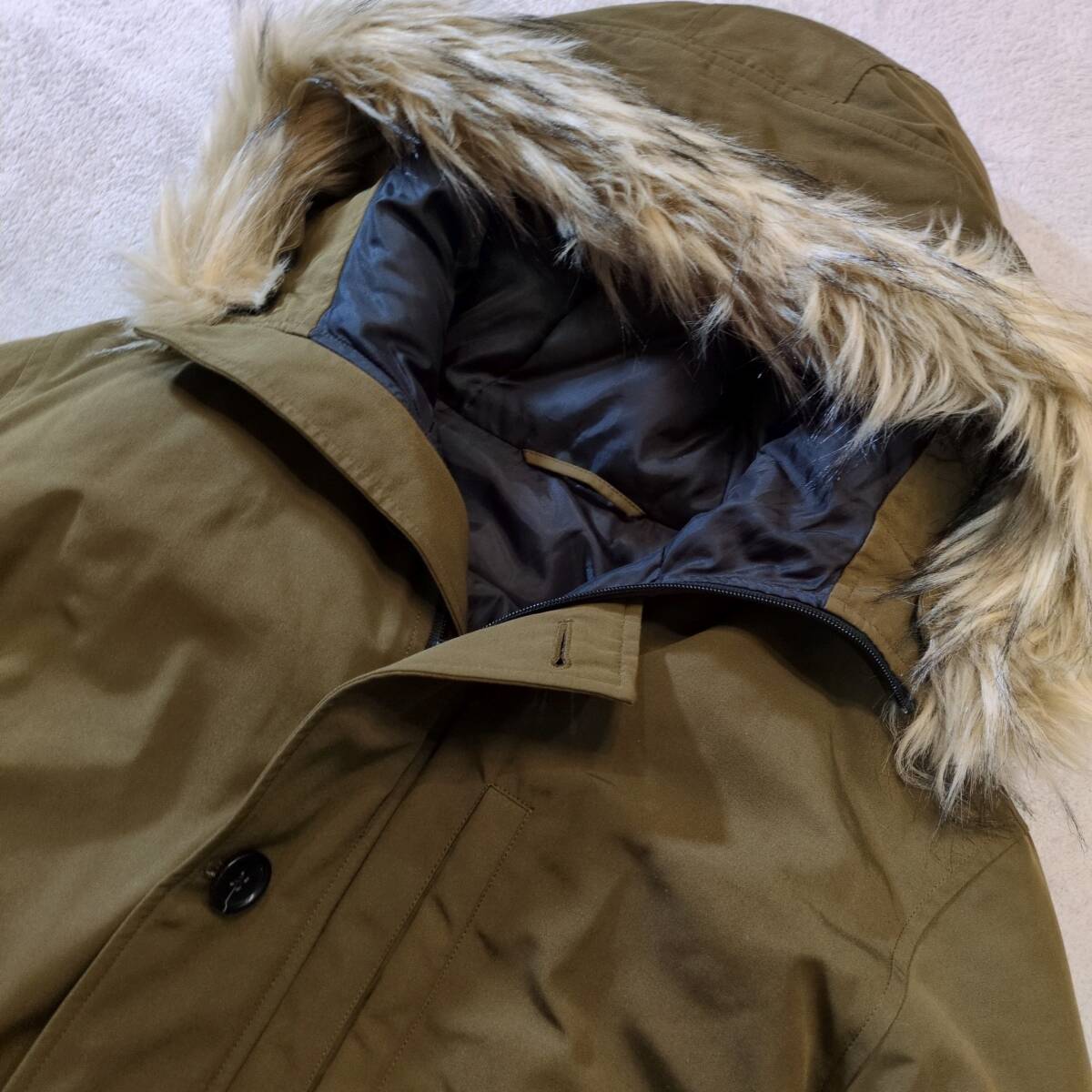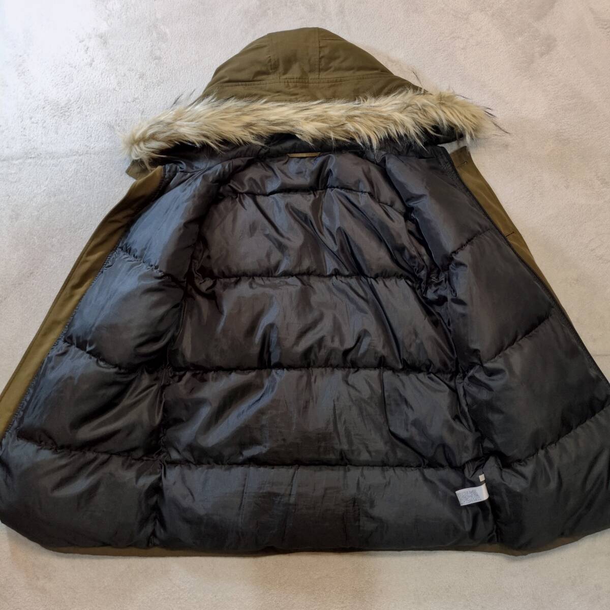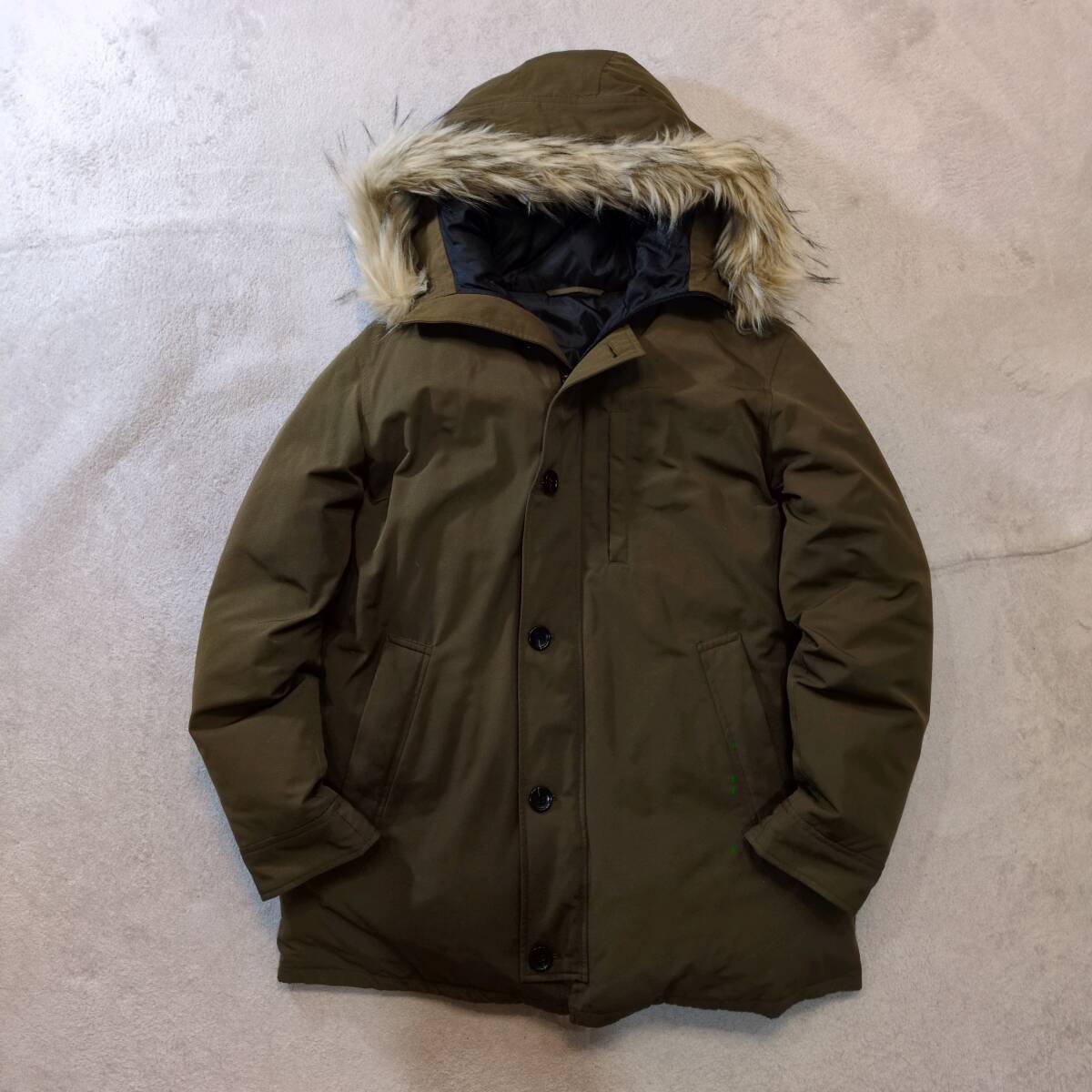 GU ジーユー ダウン&フェザー採用 ハイネックフルジップ ダウンコート ダウンジャケット カーキ メンズXL 美品