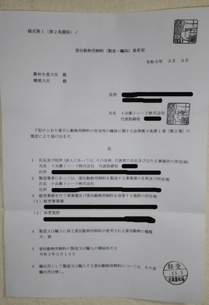 ※本商品は、近畿農政局で愛玩動物飼料製造業者届を提出、接受済みの会社で製造したものです。