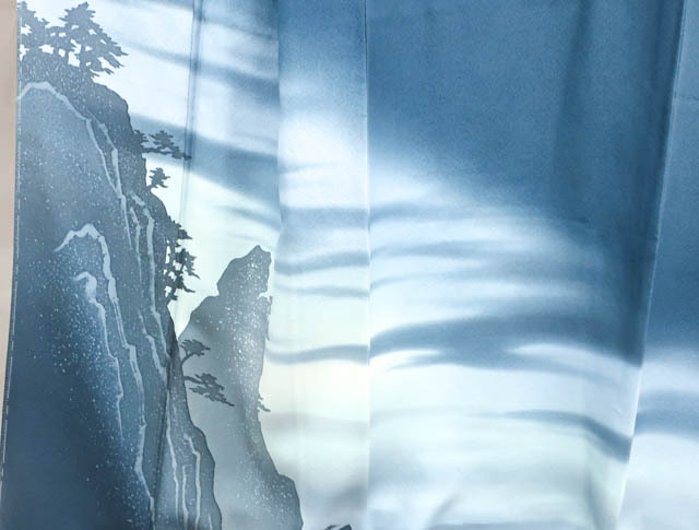 リサイクル商品のため、肩山に薄汚れがございますが着用可能なお品です。 仕付け付きでございます。 地色は、灰青色です。 1枚目の画像が近いお色かと思われます。 素材は正絹です。 |
