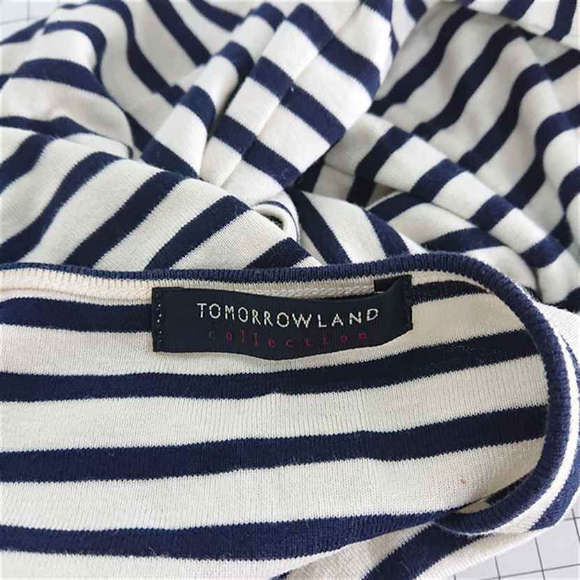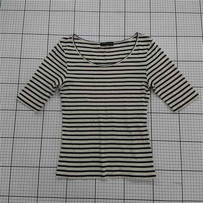 ◇ Θ TOMORROWLAND トゥモローランド ボーダー柄 五分袖 カットソー サイズ表記なし アイボリー系 レディース E
