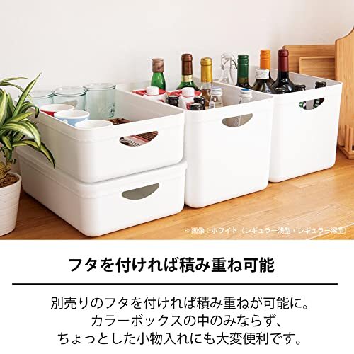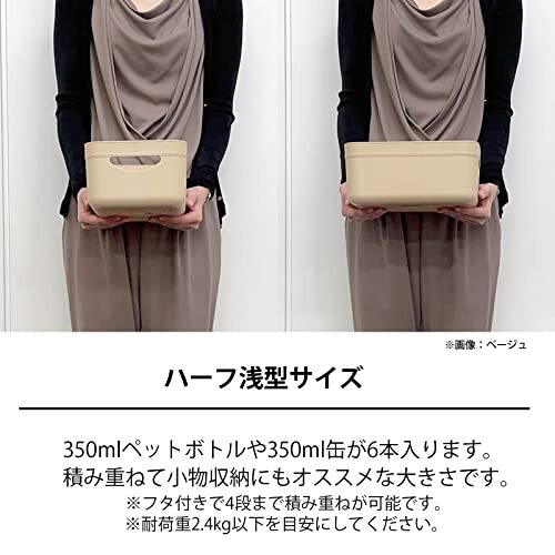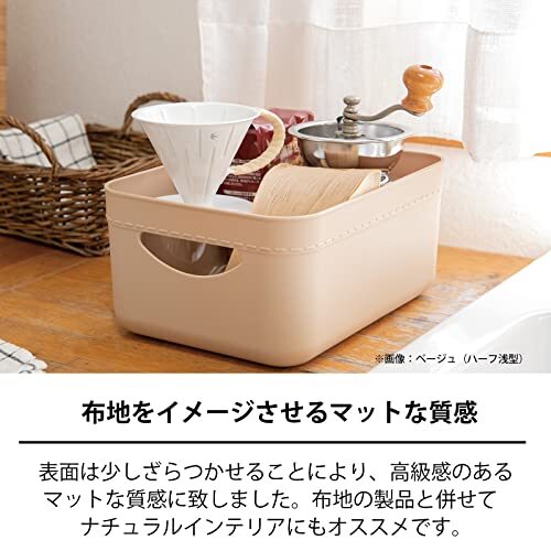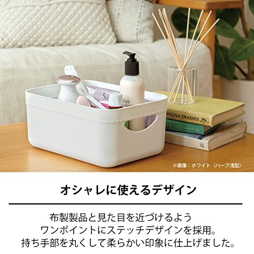 説明 ●柔らかめPEを使用し、布のような柔らかいソフトな触感に仕立てました。●布地を連想させる粗目のシボを採用し、マットな印象でナチュラルインテリアともマッチします。●布製品特有のステッチデザインで柔らかな布製品のテイストを再現しました。●別売りのフタを付ければスタック可能です。●レギュラーの上にハーフが2個乗せられます。●カラーボックス内、パントリー内の収納に最適。●棚の小物整理に便利です。●多目的収納・小物収納に。