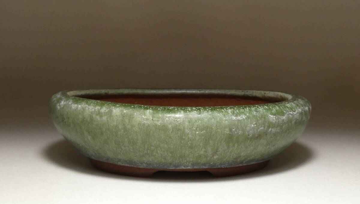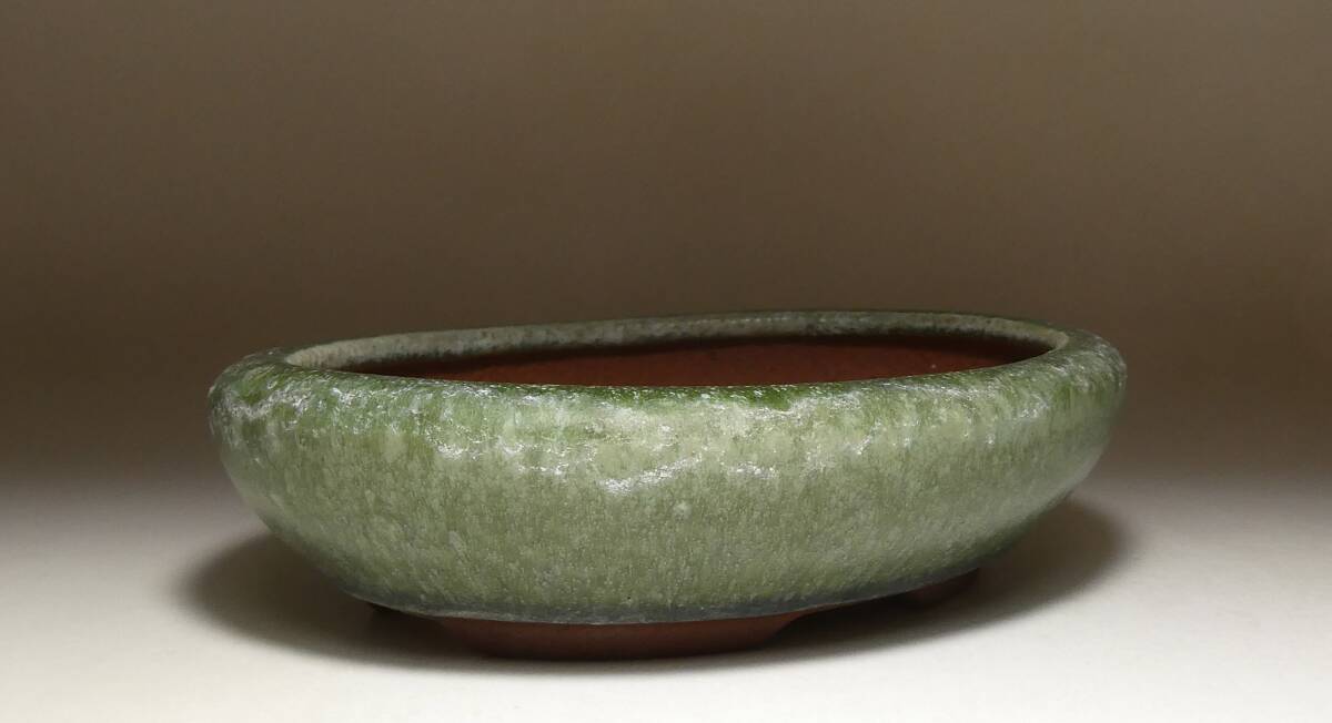 ▼耀山 緑釉楕円鉢 13.6×11.2×3.5cm