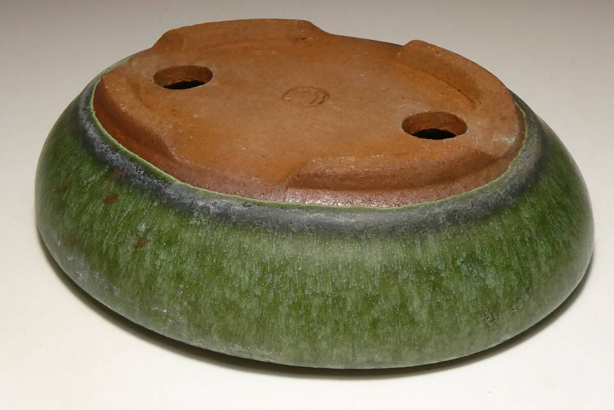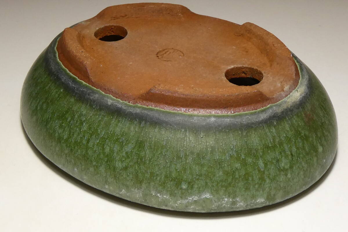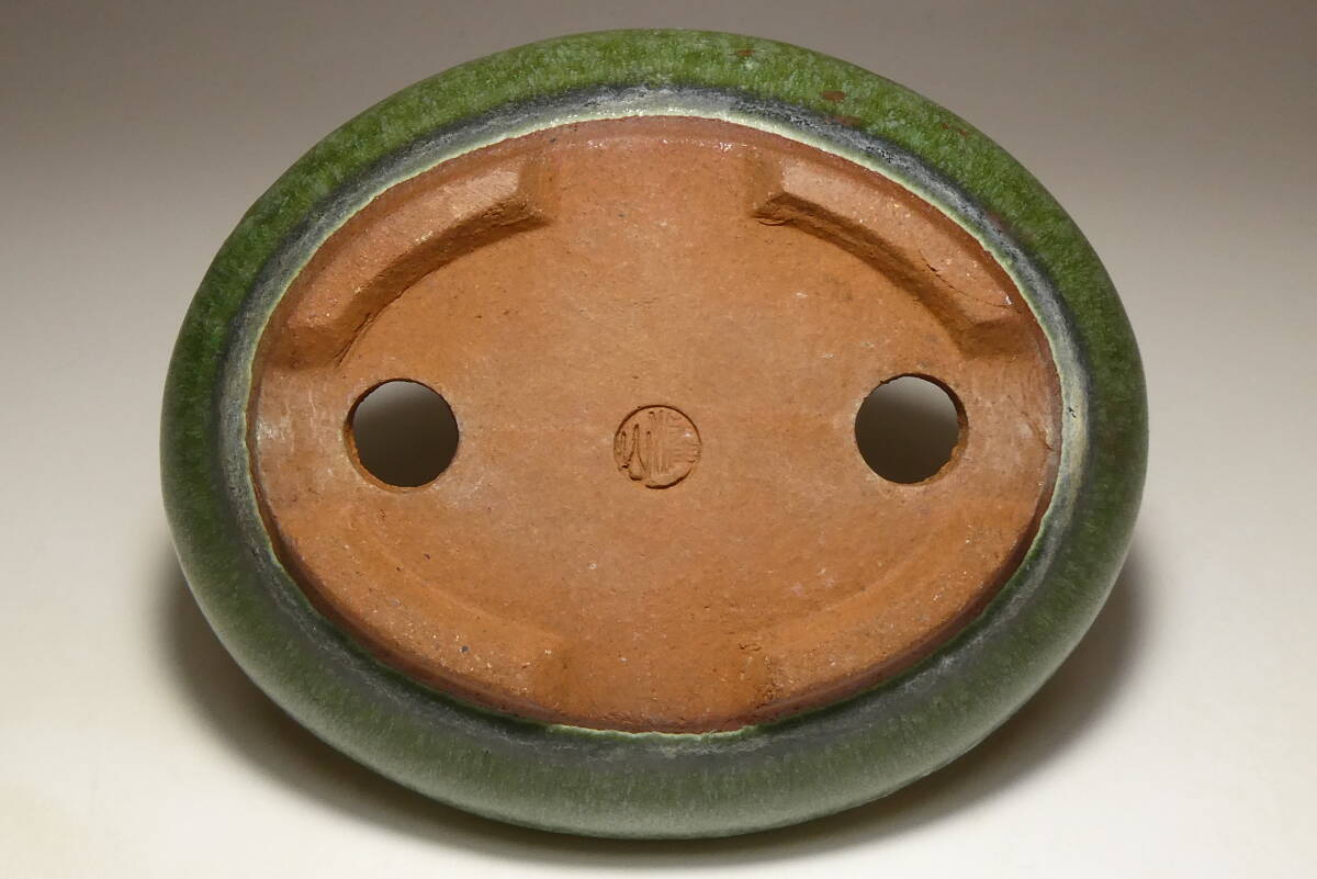 ▼耀山 緑釉楕円鉢 13.6×11.2×3.5cm の素敵な逸品です●落款:画像参照 ●中古(使用に伴うキズや汚れはご了承ください)