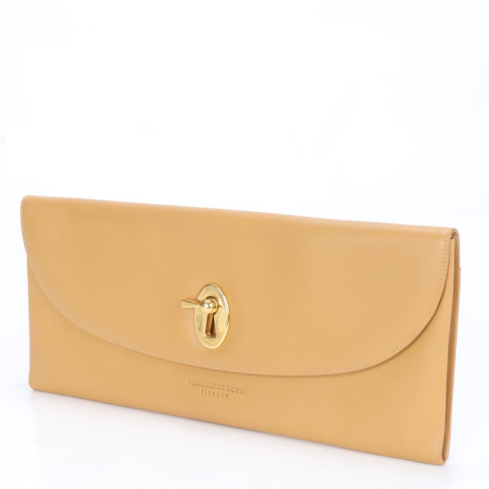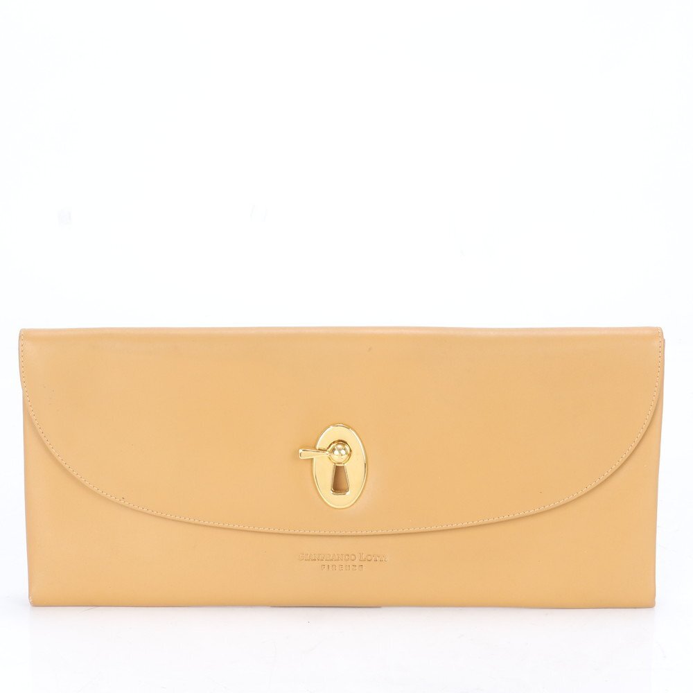 1円■美品■GIANFRANCO LOTTI ジャンフランコロッティ■ベージュ レザー クラッチ バッグ ハンド ポーチ 本革 レディース MMM CC18-1