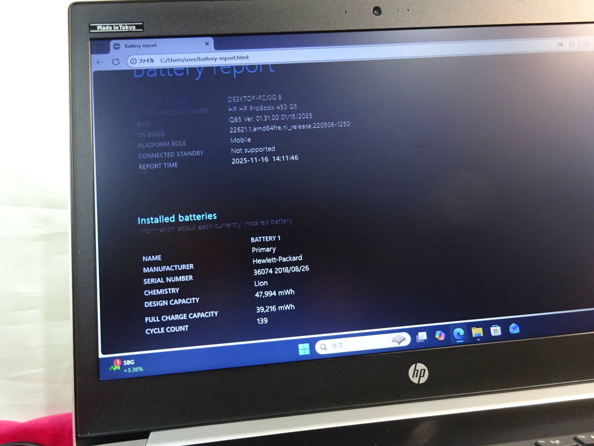 HP ProBook 450 G5 ノートパソコン/Win11/Corei5-7200U/SSD256GB/HDD500GB/メモリ8GB/動作品 (2511189)