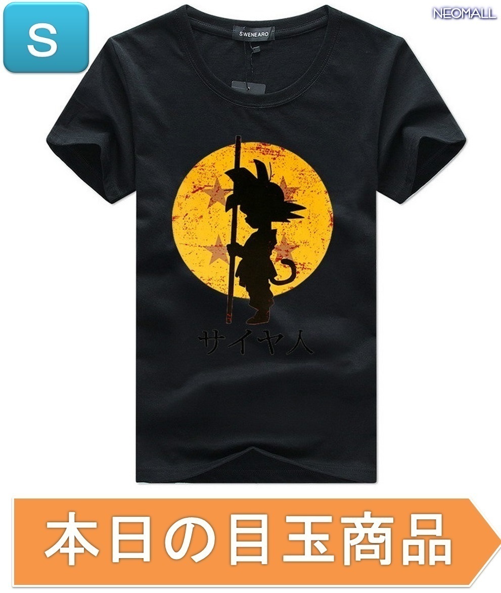 本日のお買得 ☆ 丸首 半袖 Tシャツ【344】 ブラック Sサイズ トップス シャツ シンプル イラスト シルエット 春夏