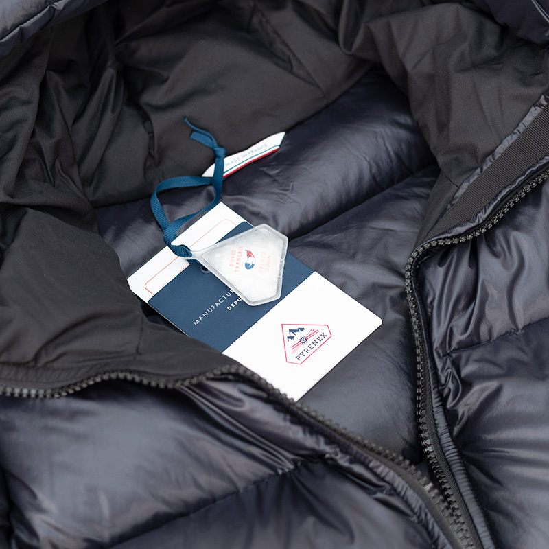 採用したダウンは、PYRENEXの中で最もグレードが高く厳選されたダウンである