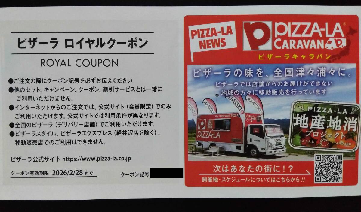 PIZZA-LA ピザーラ 割引券 クーポン 2026/2/28 現物送付なし