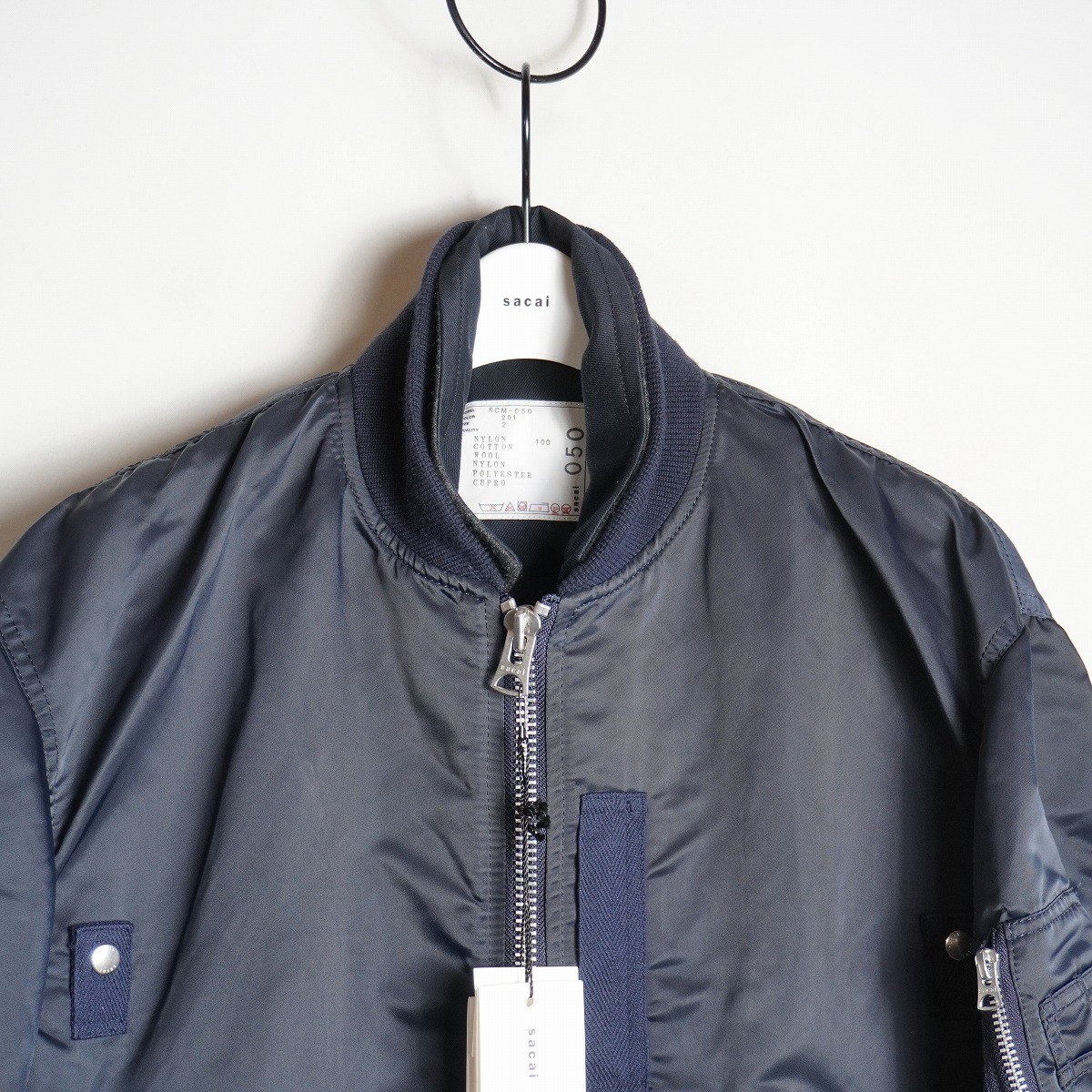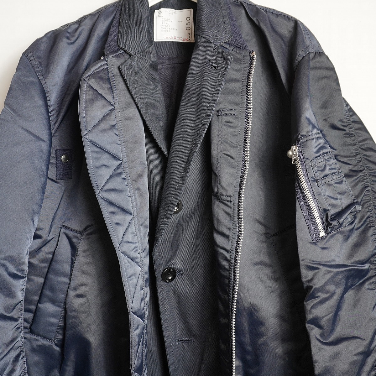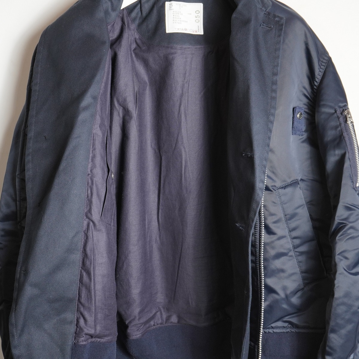 sacai サカイ MA-1 Hybrid Jacket ハイブリッド テーラード ドッキング ボンバー ジャケット ブルゾン SCM-050 2紺 メンズ 本物です。