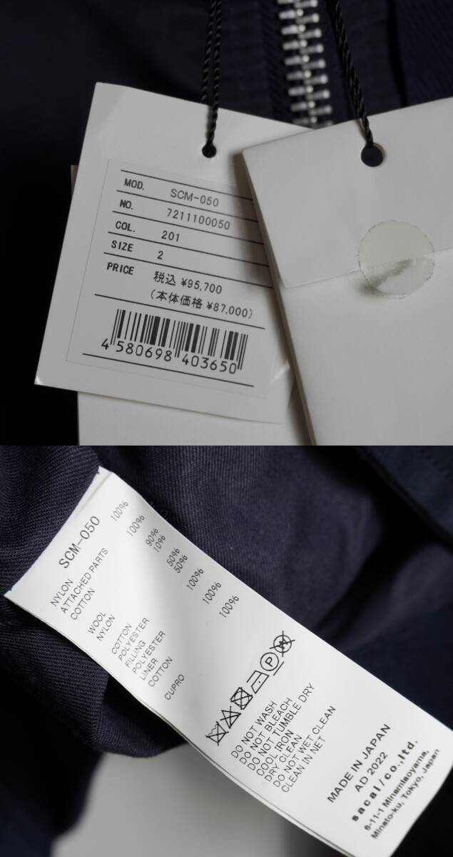 美品22AW sacai サカイ MA-1 Hybrid Jacket ハイブリッド テーラード ドッキング ボンバー ジャケット ブルゾン SCM-050 2紺 本物412P