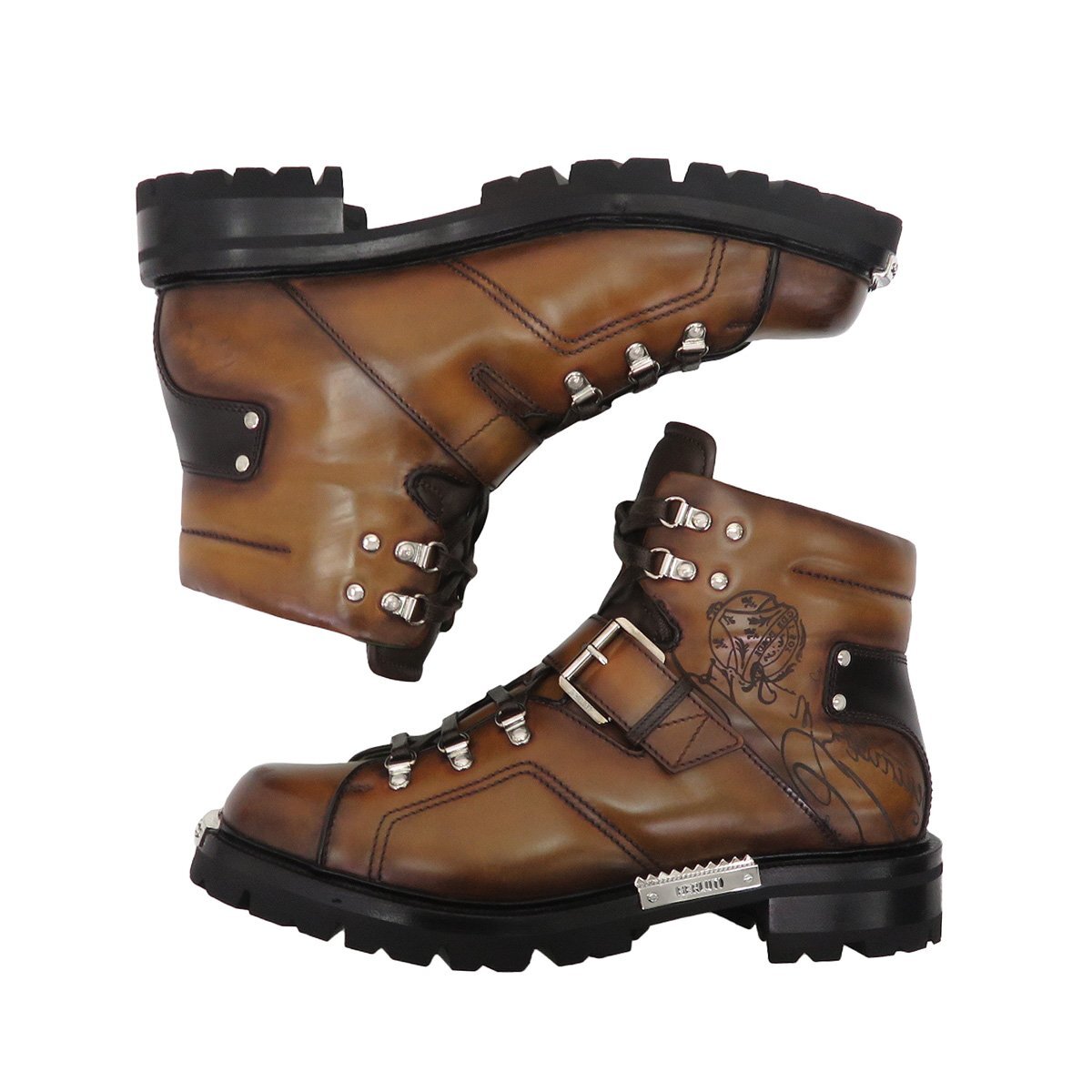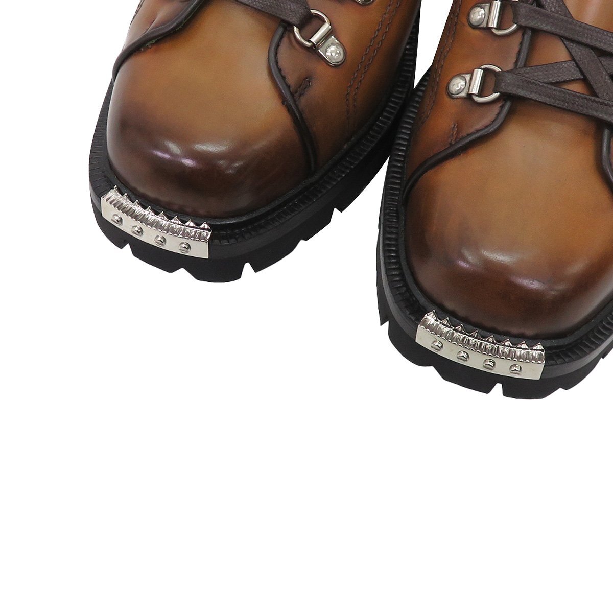 | ブランド Berluti/ベルルッティ 1895年にスーリエ・ベルルッティが創業。ベネチアンレザーという革にさまざまな色を塗り重ねる彩色技術は「パティーヌ」技法を開発し、月の色の移りかわりにインスピレーションを得て考案した、深みのある色彩表現と高く評価されている。歴史上の有名人、画家「ピカソ」や小説家「ジャン・コクトー」をはじめ現代でも本田圭祐、高橋秀樹など様々な著名人からの支持を得ています。 ※鑑定済みの正規品です。万が一偽物の場合には全額返金致します。 商品説明 ☆極美品☆ ・公式参考定価:451,000円(スクリット無しモデルは35万) GQ JAPANの【最高&最強なブーツリスト2020】にて名だたるブランドを押さえて、TOPに掲載されたのがこちらのブルニコ。 アイシーゴールドのパタンカラーは、イエローとブラウンをブレンドし、鮮やかなコントラストを生み出し、魅惑的な光沢を際立たせます。 レザーとラバーソールには、スキーブーツとスキー板を固定するために使用されていた3つのメタルバックルがあしらわれています。 Dリング、フラットな防水レース、幅広バックル、ヒールの光沢のあるレザー補強など、細部のデザインを一新し、よりモダンな雰囲気を演出しています。 市場に出ているブルニコとはデザインが異なる激レアなマウンテンブーツをモチーフとしたマスキュリンな1足で、ドレスにもワークにも使えるまさに最強種。 革も素晴らしく、ベルルッティ最高峰と呼ぶに相応しい逸品です。 芸術品のように見惚れてしまうので、観賞用のコレクションにしたい方にもオススメです。 ●素材:レザー ●カラー・・・アイスゴールド サイズ ○表記サイズ・・・【9 1/2】日本サイズ:27.5cm(ベルルッティ公式サイトより) ※日本サイズへの換算は下記、注意事項欄の【日本サイズ換算表】をご確認下さい。 ○実寸サイズ(平置き) ・アウトソール全長・・・約32cm ・アウトソール最大幅・・・約12cm ・ヒール高さ・・・約4cm ・全高(ヒール含む履き口まで)・・・約17cm 商品状態・コンディション S・ほぼ使用感を感じない、数回着用程度とみられる美品 目立つような汚れは見受けられず、弊社基準にて極美品と判断できる商品です。 中古品にご理解のある方であればご納得頂ける状態だと思います。 付属品 なし |
