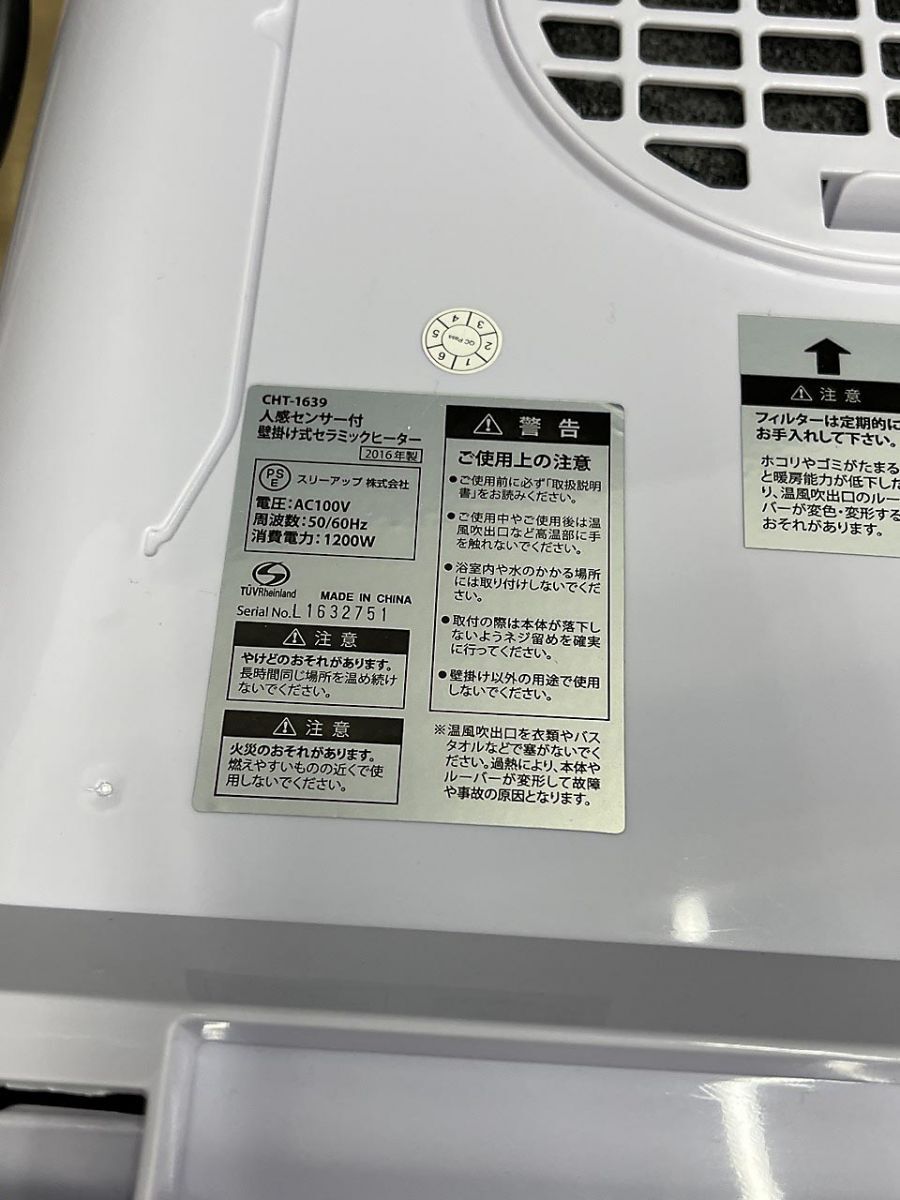 【商品名】 THREEUP スリーアップ 人感センサー付 壁掛け式脱衣所用ヒーター ポカポカ暖ヒート CHT-1639WH