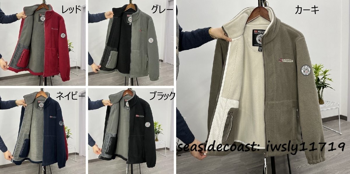 新品*ジャケット メンズ 裏起毛 フリースジャケット 秋冬 立ち襟 厚手 暖かさ 防寒 保温 マルチポケット アウター アウトドア カーキ 2XL