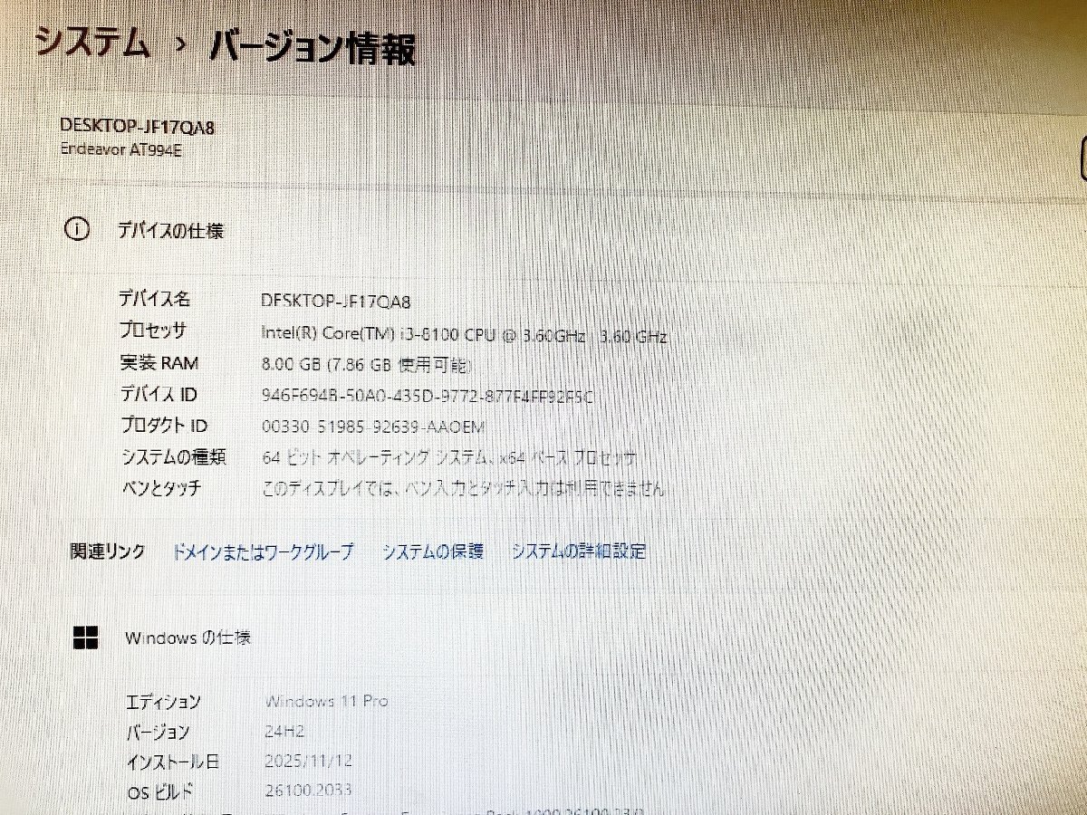 | CPU | Intel(R) Core(TM) i3-8100 CPU @ 3.60GHz 3.60 GHz |