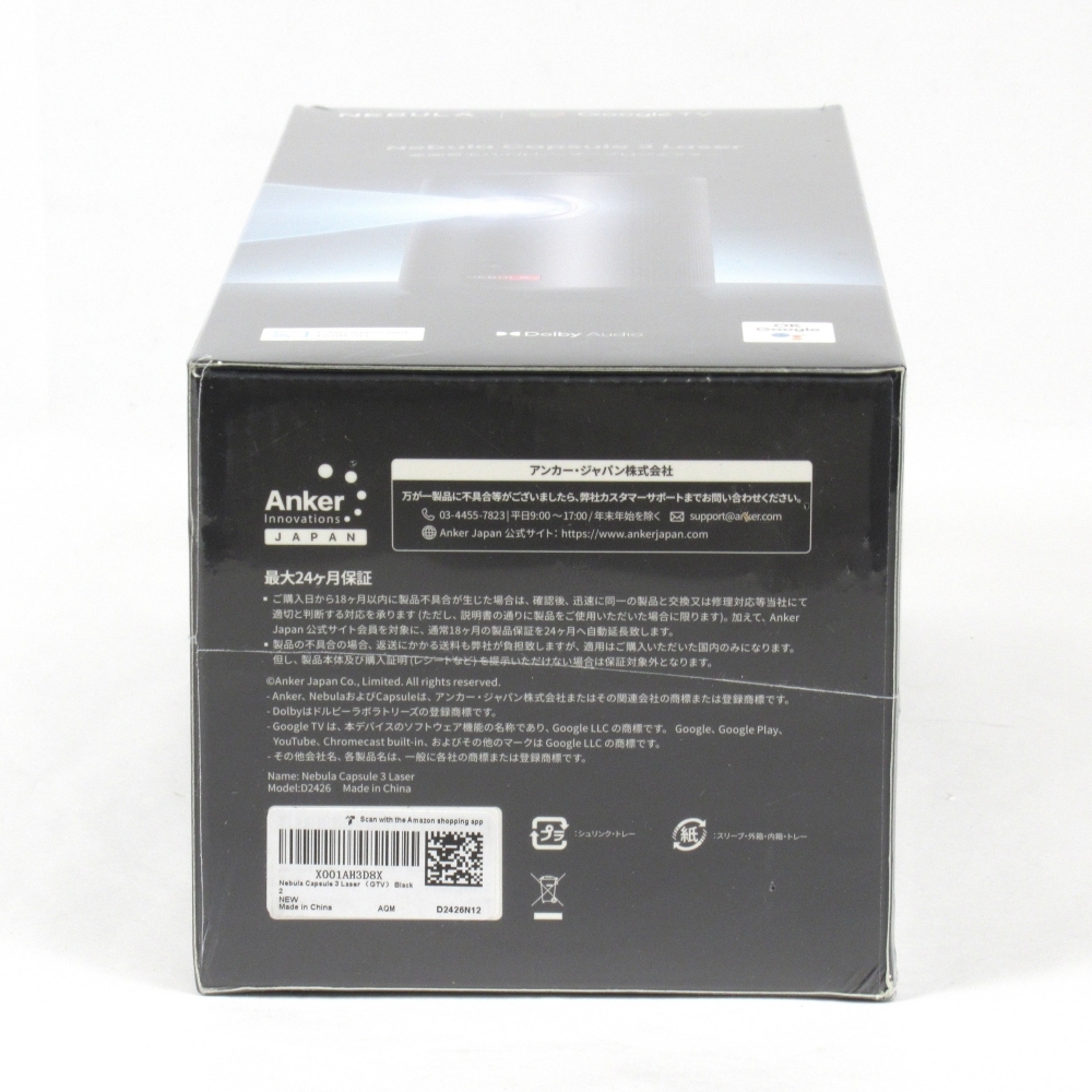 | 商品名 | 1円〜 未開封 Anker アンカー Nebula Capsule 3 Laser 高画質モバイルレーザープロジェクター 箱付 動作未確認 4343937 |