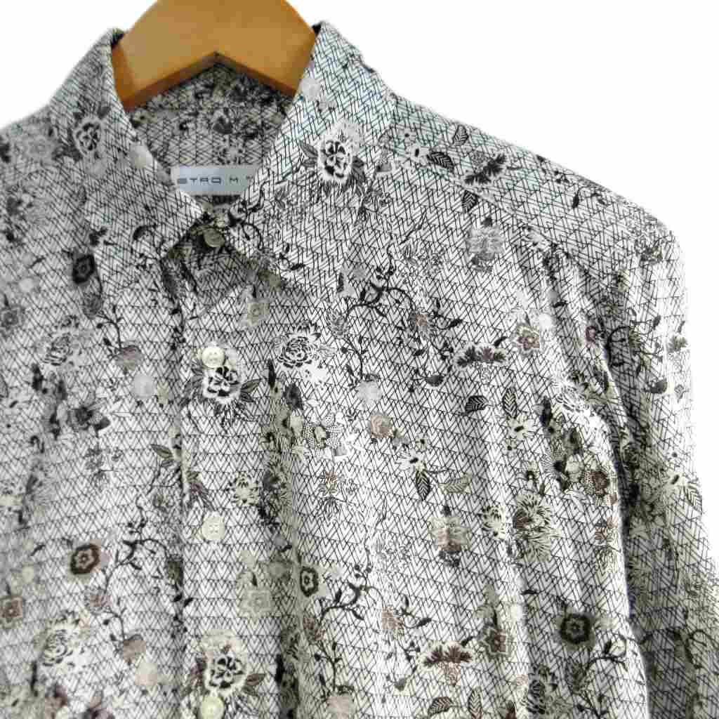 エトロ ETRO 16SS 総柄 花柄 シャツ 長袖 M 黒 ブラック 白 ホワイト 1117 IBO84 メンズ