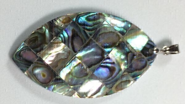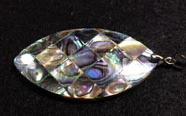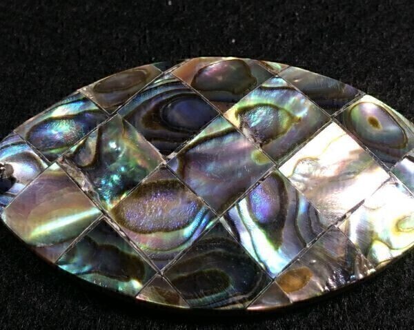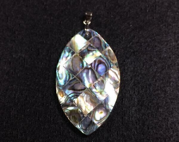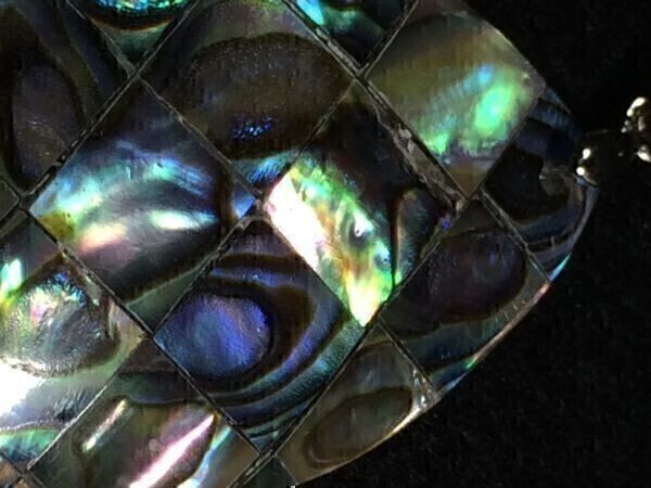 【Premio Fortuna】貝細工 螺鈿(らでん)象嵌のペンダント 虹色シラーがまるで宝石のよう 209196☆