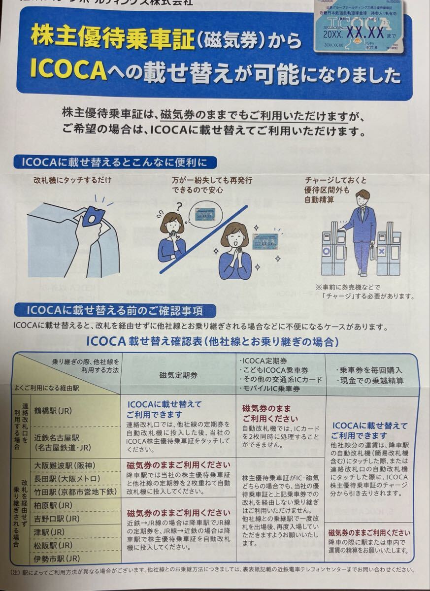 ICOCAへ載せ替えた場合などは、制約があるようですので、同封のチラシをご覧ください。