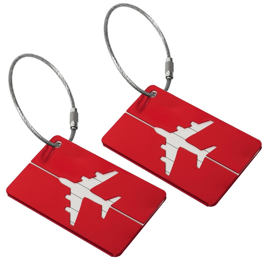 ◆アルミスーツケースタグ 2枚セット トラベルネームタグ 荷物タグ ラゲッジタグ 紛失防止 目印 海外旅行 出張 キャリーケース ネームホルダー 旅行タグ 【レッド2枚】APKH02S
