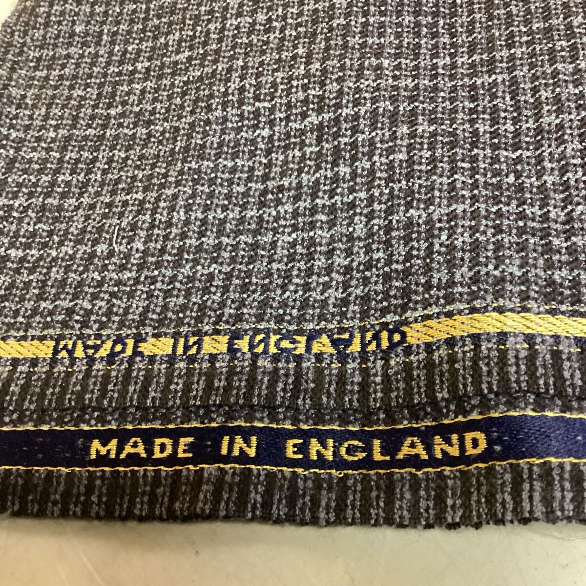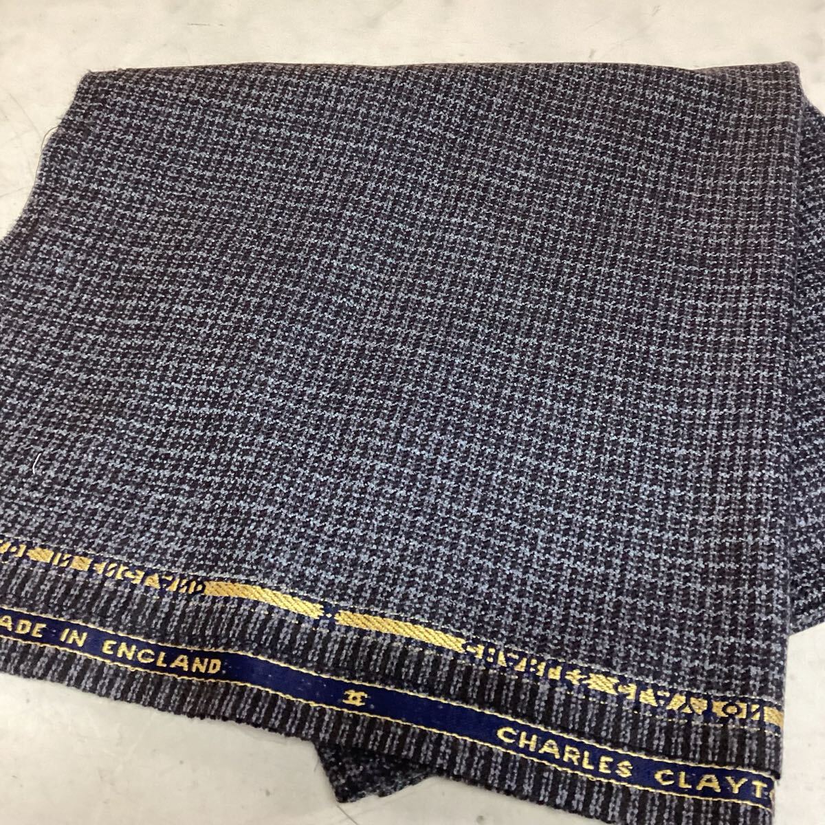 英国製の高級ウール生地、CHARLES CLAYTONの生地になります。MADE IN ENGLANDの品質が魅力のウールで、しっかりとした厚みがあり、高級スーツ地のような上質な手触りです。ヘリンボーン×チェック調の細かな織柄で、高級感ある落ち着いた色味です。ジャケット、スラックス、スカート、ハンドメイド小物、インテリア用など幅広くご使用いただけます。保管品ですが、生地自体は非常に綺麗で傷みや汚れは見当たりません。生地端にブランド名が入っています。裁ち落とし部分など多少のほつれはご容赦ください。ビンテージ生地をお探しの方や、英国製ウールを使用したハンドメイド素材を求めている方におすすめです。サイズは画像でご確認ください。中古品扱いとなりますのでご理解の上ご購入お願いいたします。