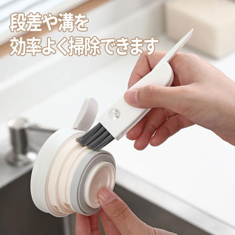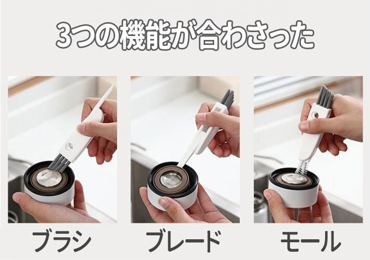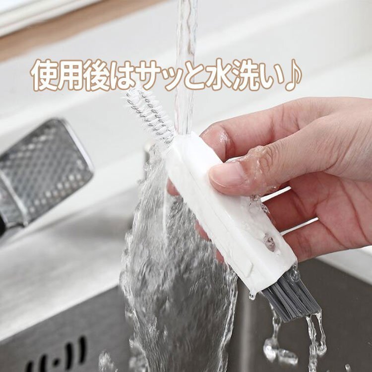 ◆3WAYすき間洗いブラシ 水筒 ブラシ パッキン外し すみブラシ 水筒のフタや飲み口が隅々まできれいに 凸凹所 細い溝の汚れもしっかり掃除 マルチ水筒掃除グッズ SJIA8260