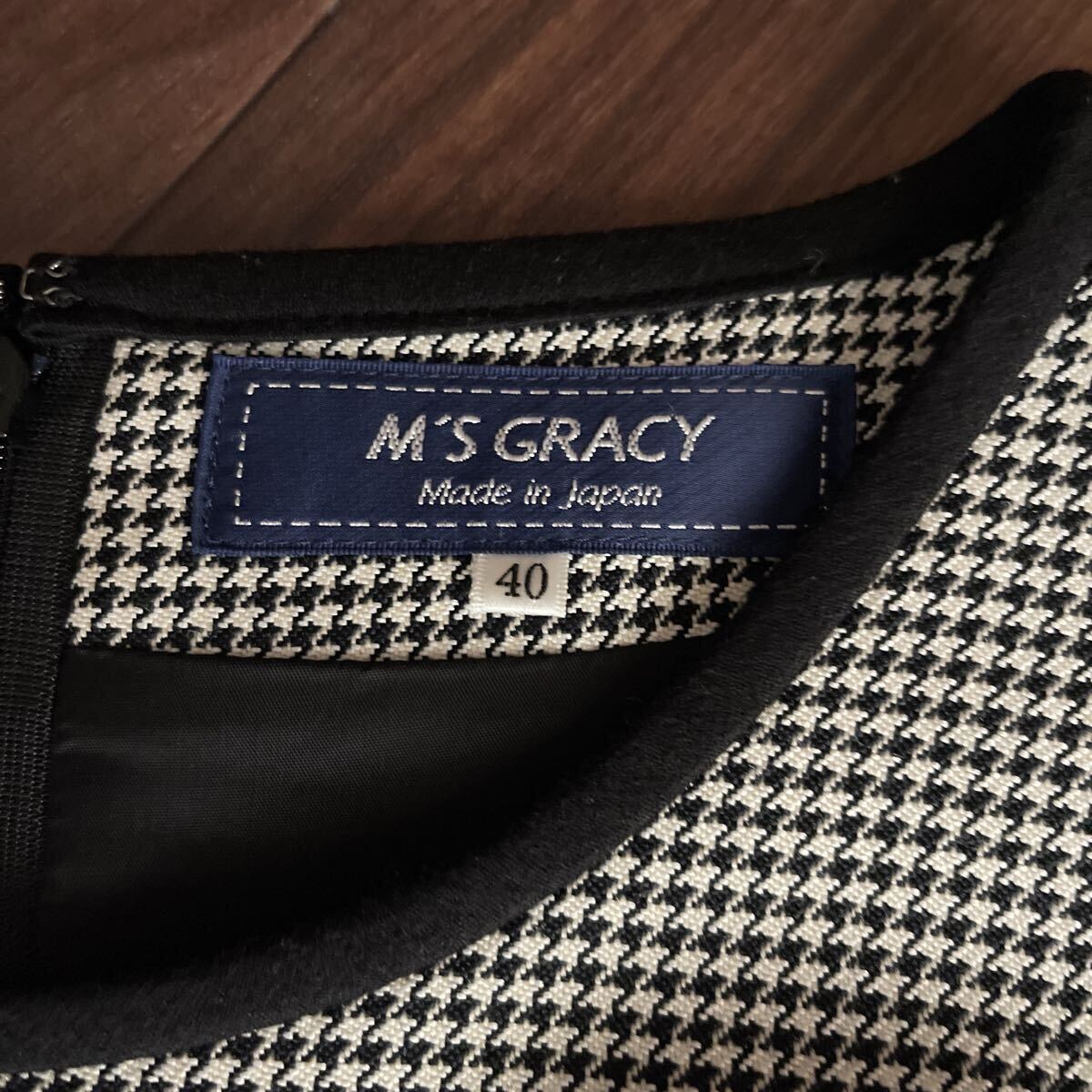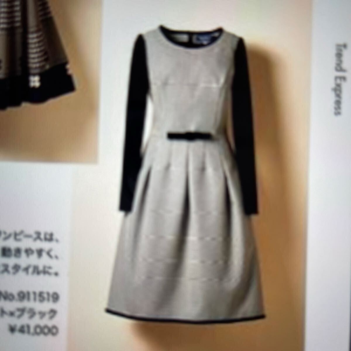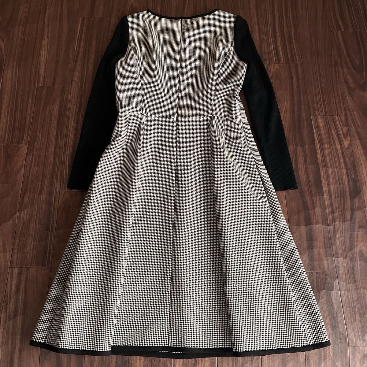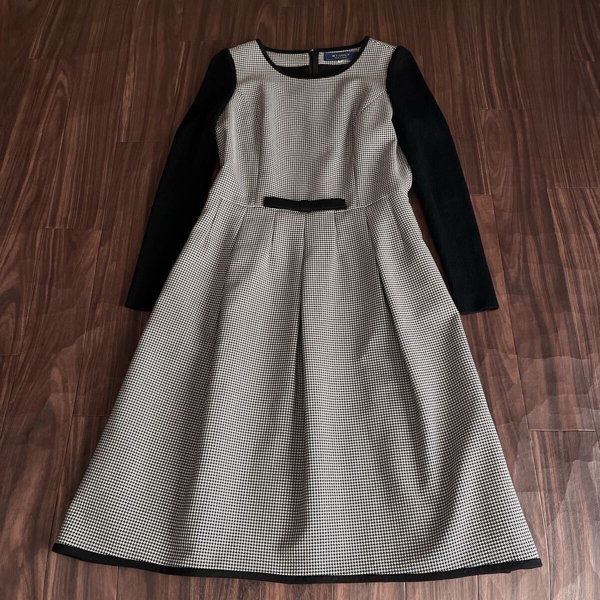 千鳥格子柄身頃にニット袖の素敵なワンピースです。