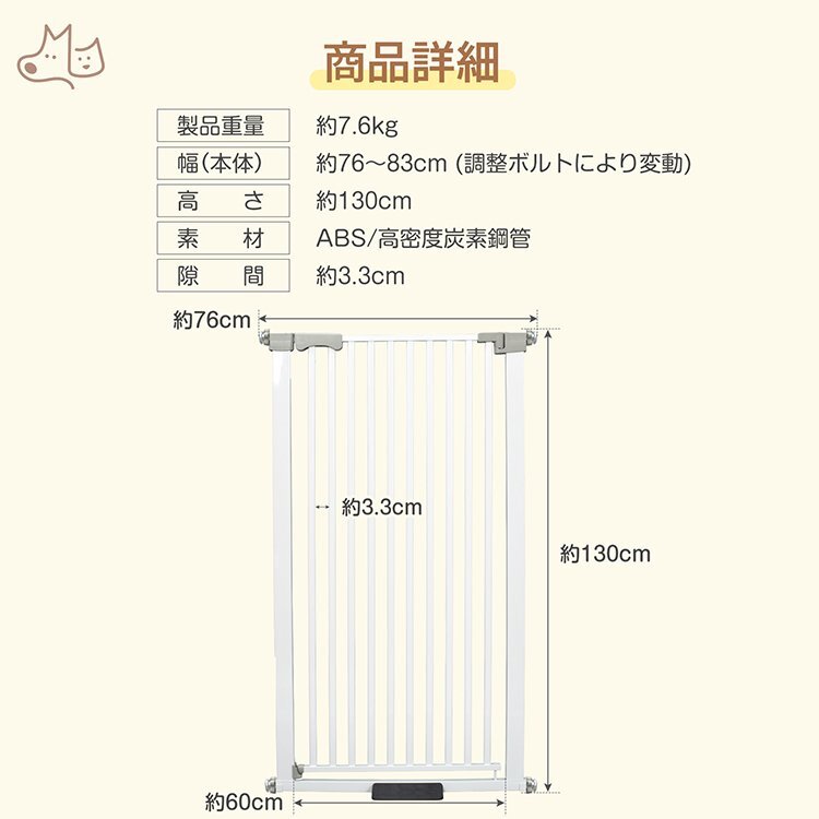 【サイズ(約)】:幅(本体)76cm~83cm×高さ130cm