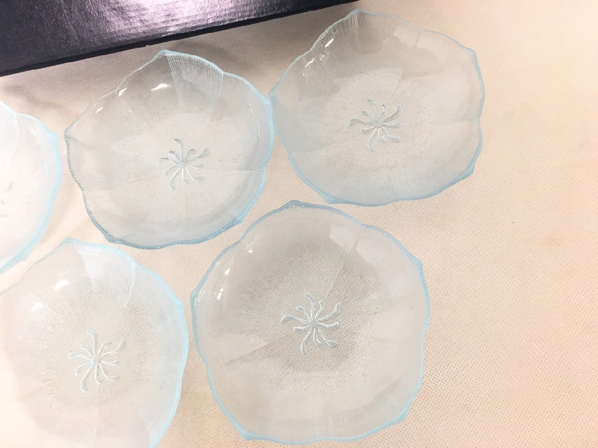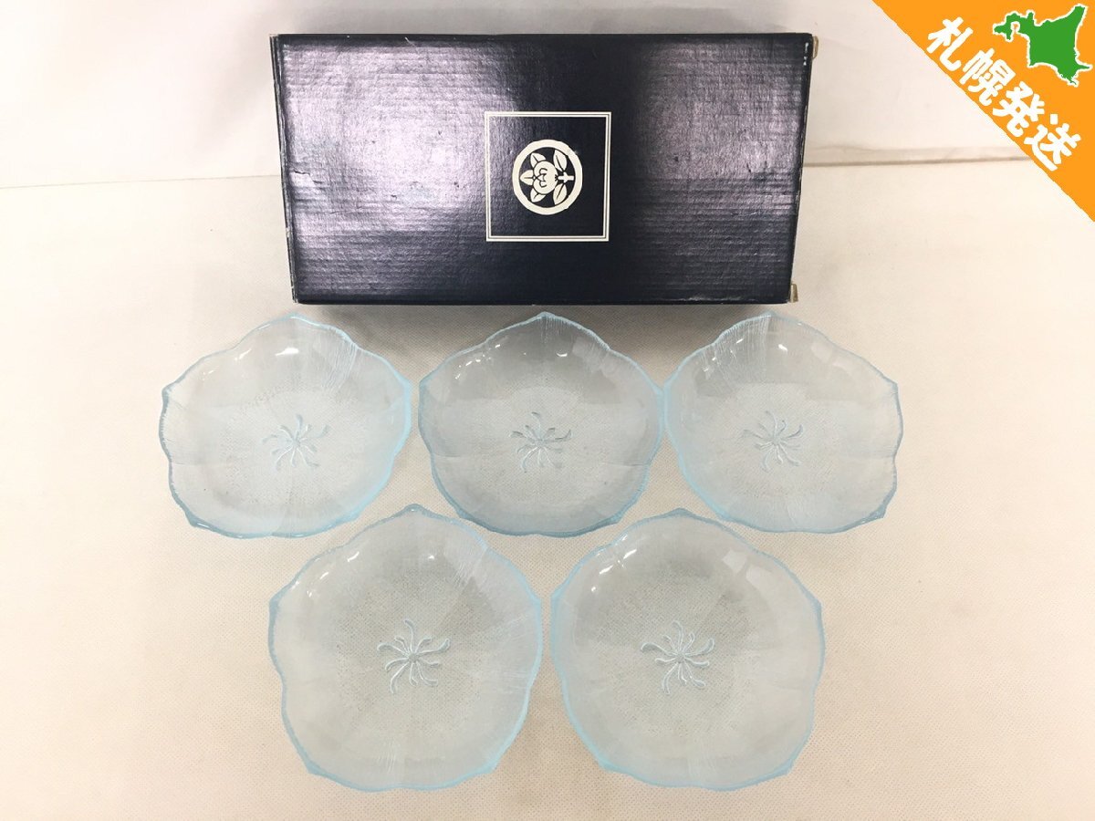【R5-50898】たち吉 変彩ガラス 小鉢 和食器 そうめん 冷奴 繊細 銘々皿 こばち ガラス食器 桔梗 フルーツ 5点 セット【千円市場】