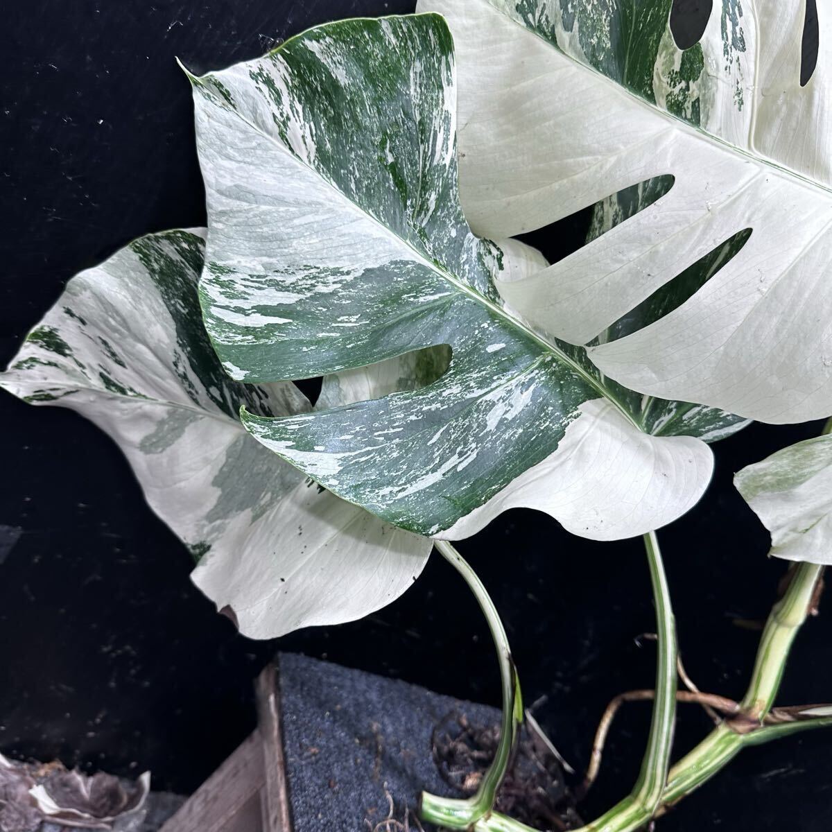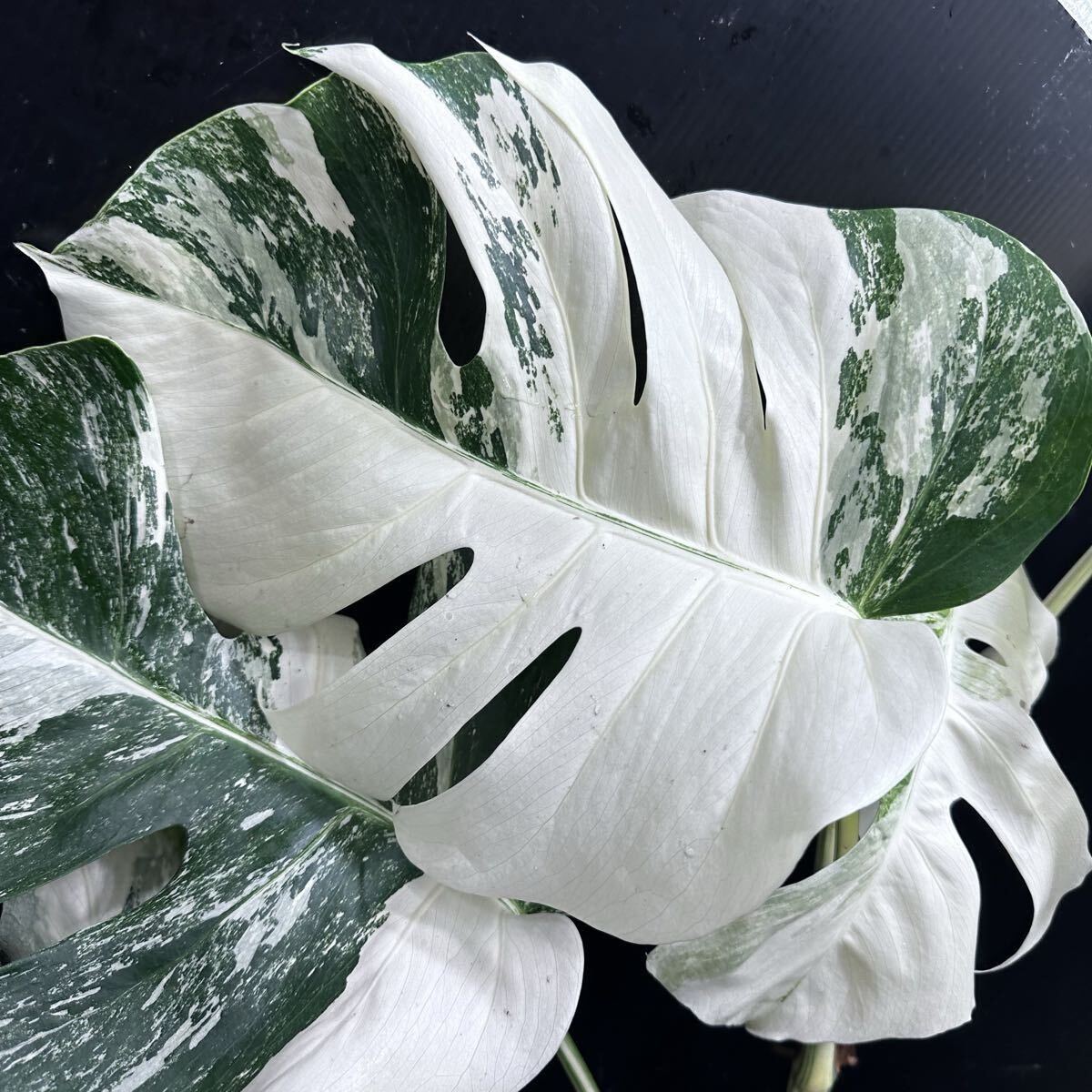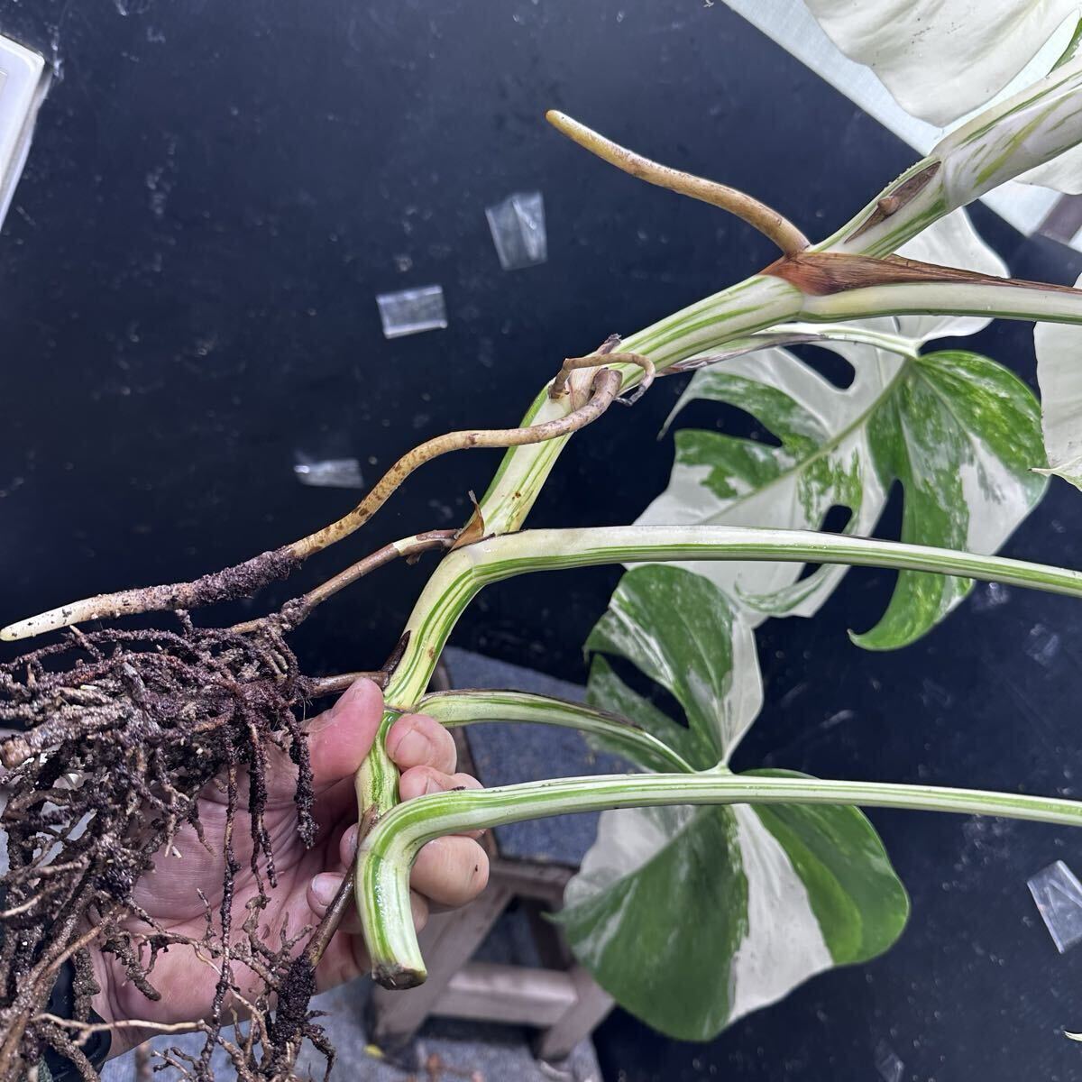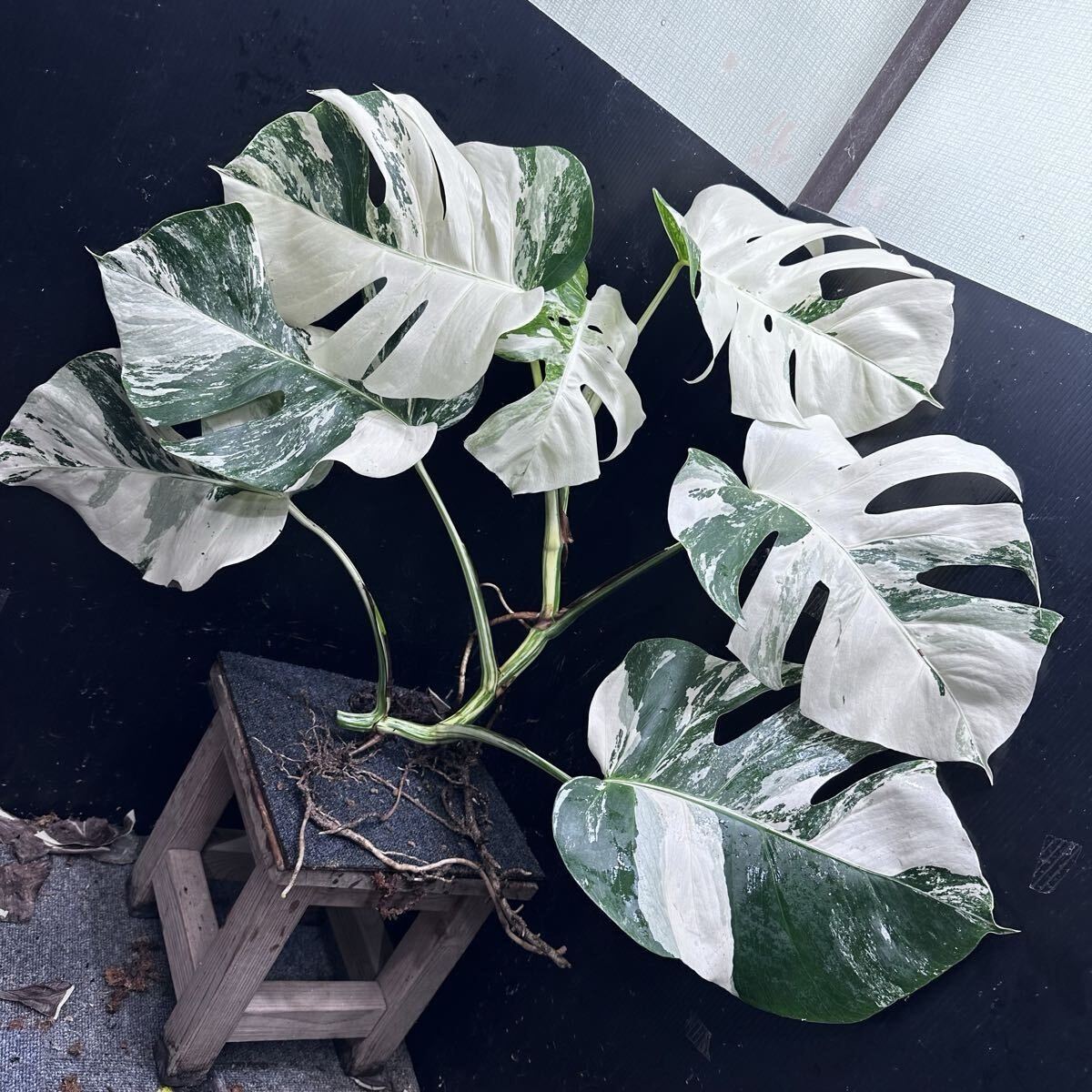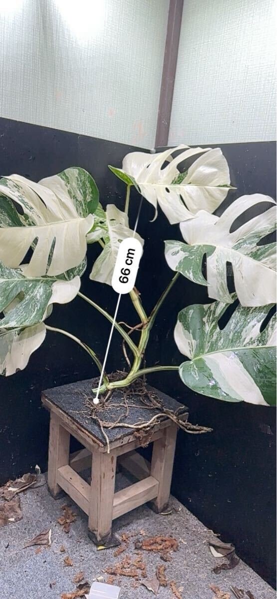斑入りモンステラ ホワイトタイガー 発根済 ベアルート 葉っぱ7枚付き 66㎝ 極上 希少 Monstera WhiteTiger