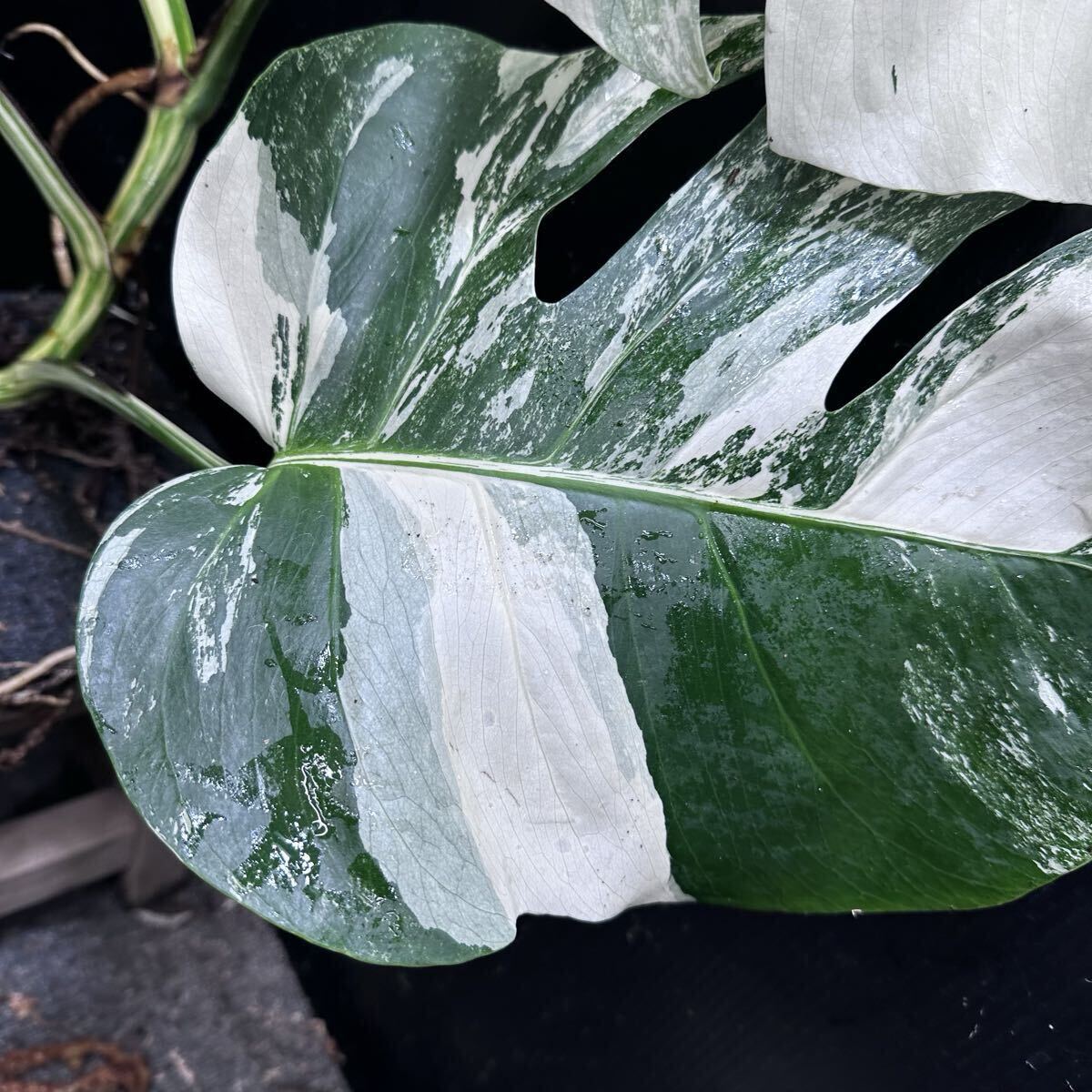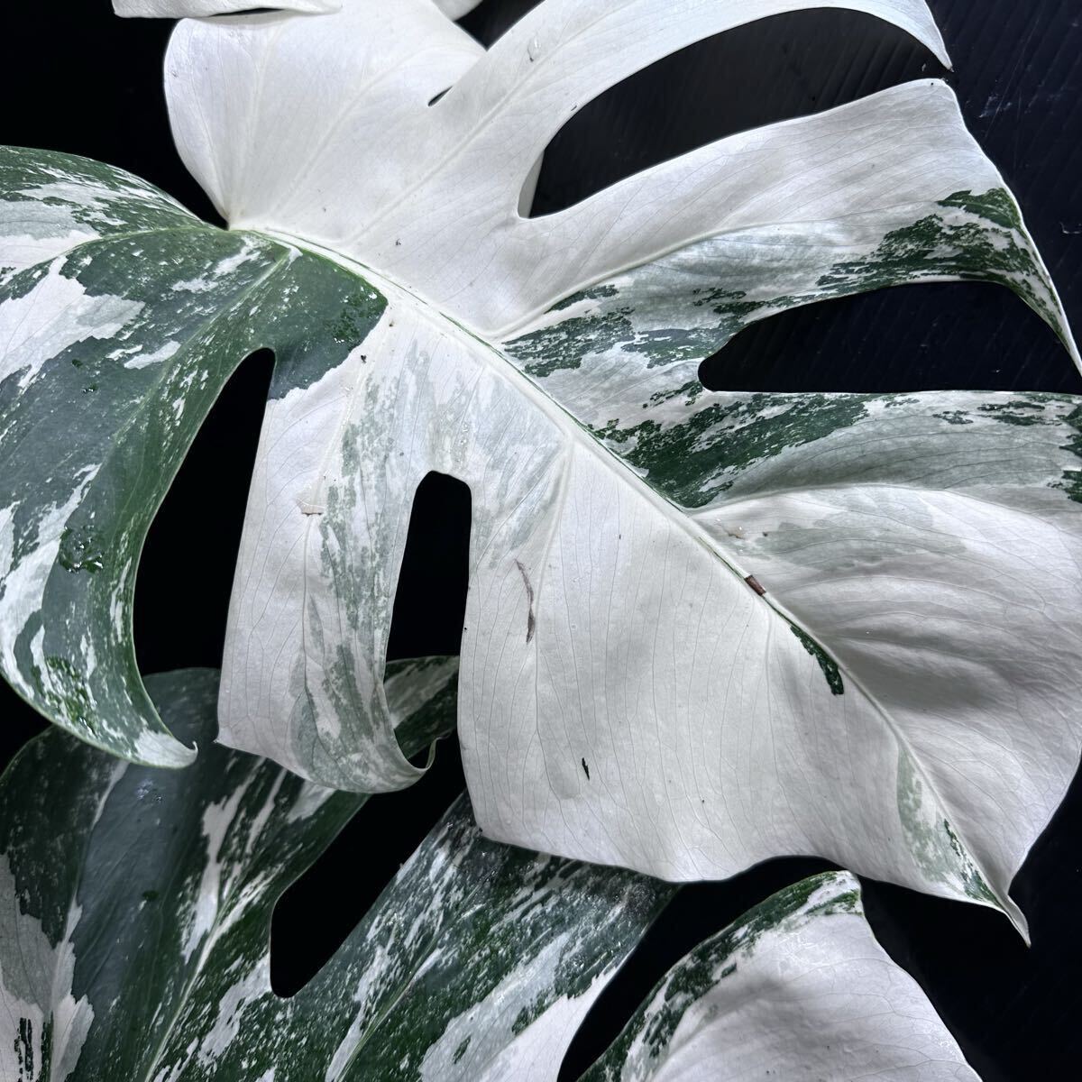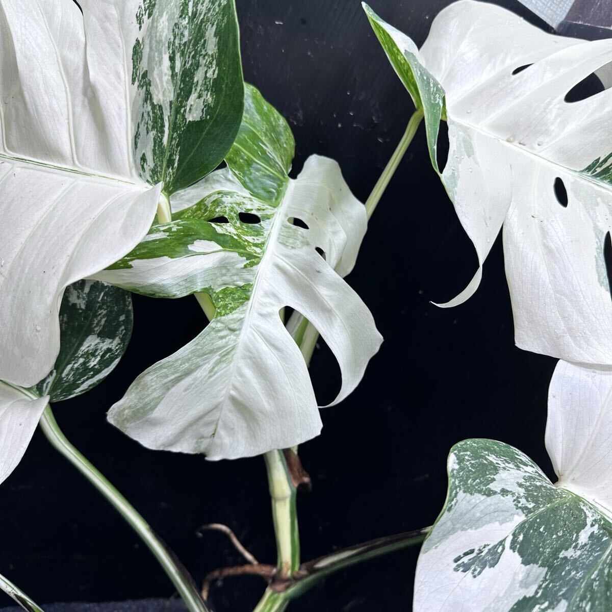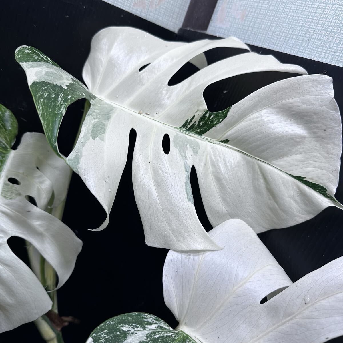 斑入りモンステラ ホワイトタイガー 発根済 ベアルート 葉っぱ7枚付き 66㎝ 極上 希少 Monstera WhiteTiger