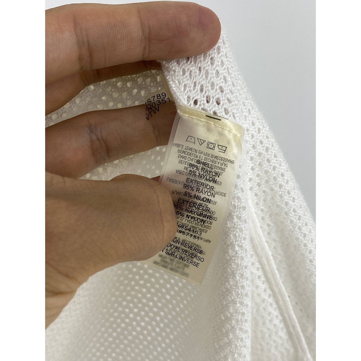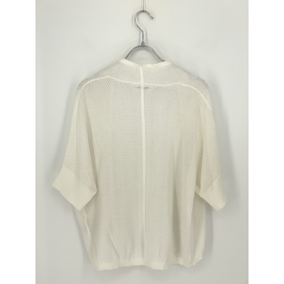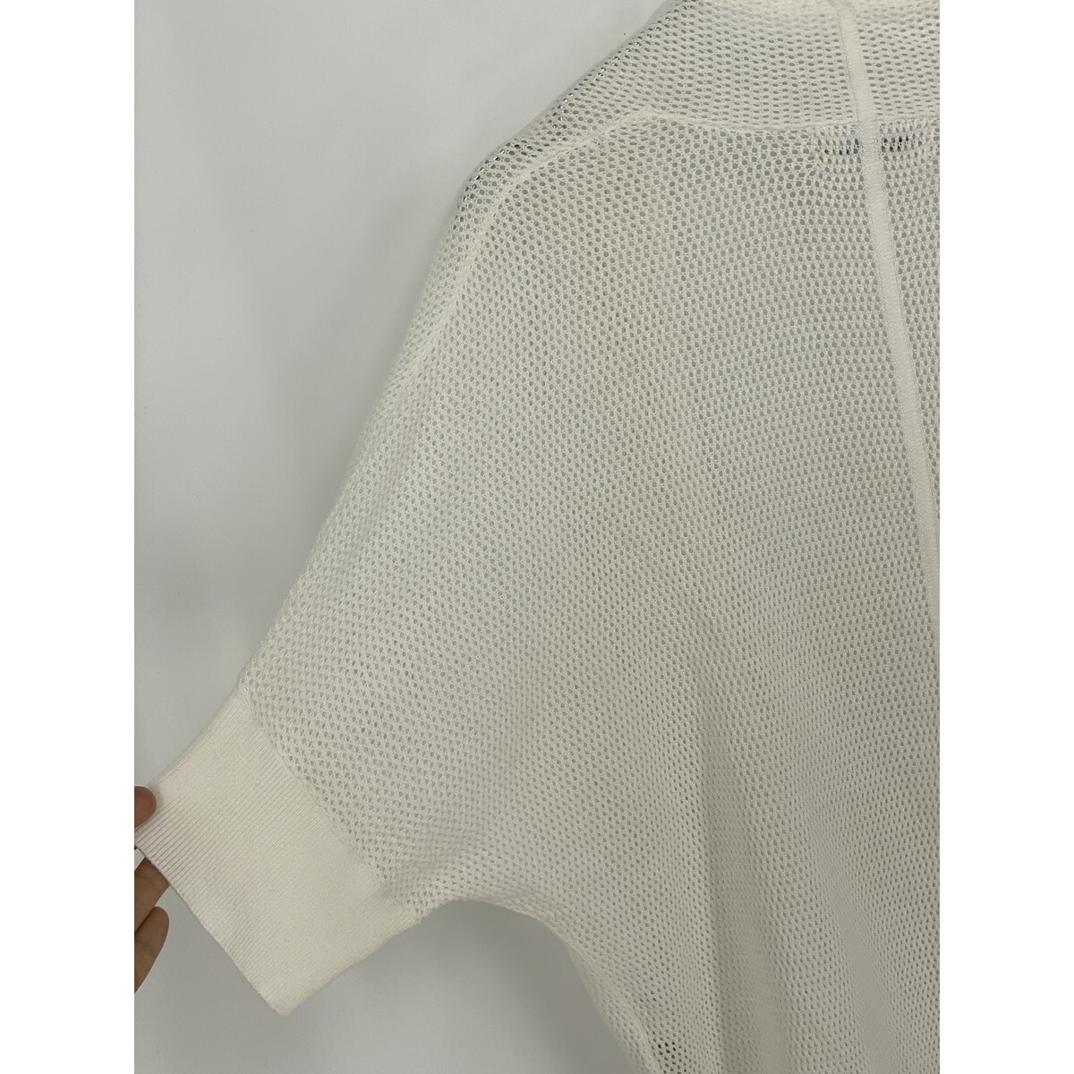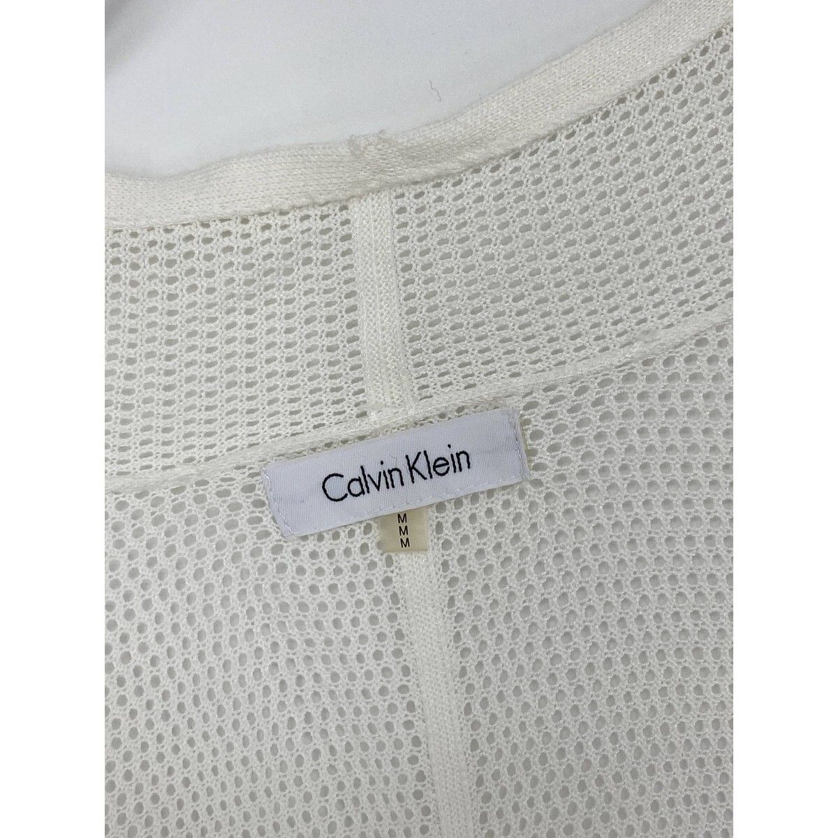 B0645/ Calvin Klein カルバンクライン レーヨン ローゲージ 金装飾 前開き ボタンレス 半袖 ニット リブ カーディガン M 白 レディース